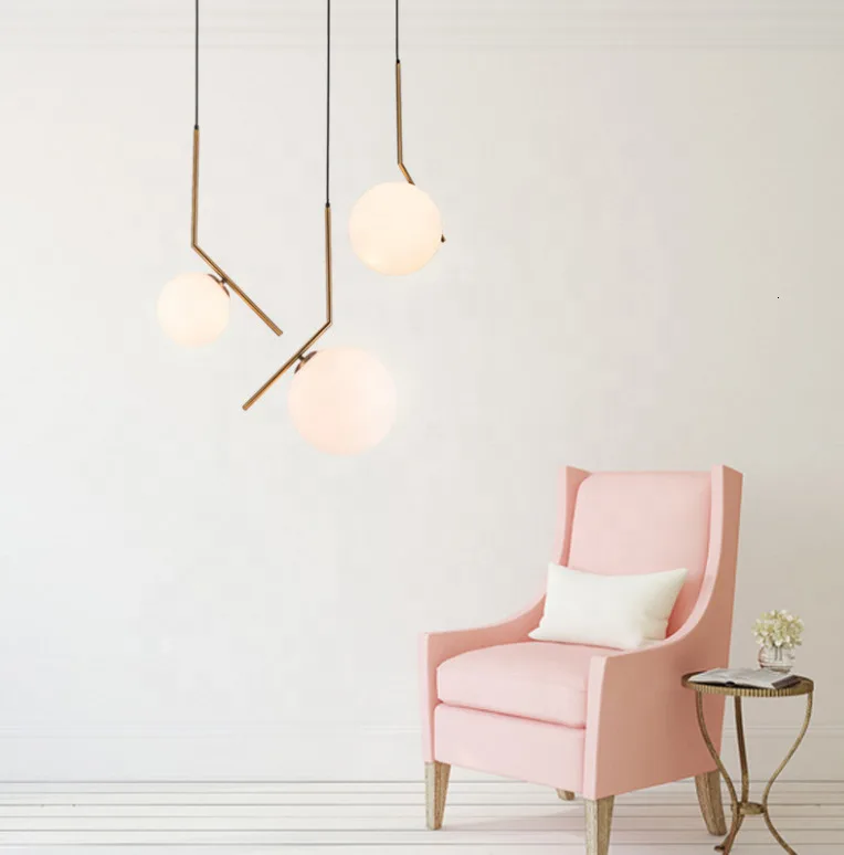 Простой подвесной светильник из мозаичного стекла для спальни, матовый белый стеклянный шар, светодиодный подвесной светильник для гостиной