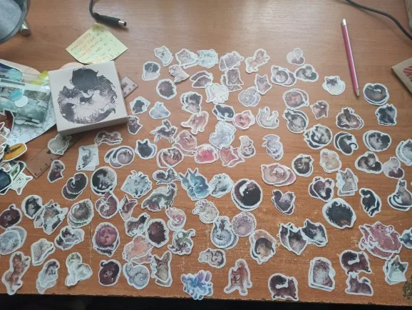 Наклейки неплохие, красивые. Как и ожидалось, очень маленькие и при этом довольно тусклые, я бы сказала, слишком и масштаб некоторых картинок дает в результате ощущение что изображение - какая-то цветная каша, ничего не понятно, но таких, благо, не много. Котики полупрозрачные, подойдут на однотонную бумагу, типо скетчбуков или блокнотов без разлиновки. Причина сниженной оценки, в том, что около трети наклеек пришли мятыми. Я заказывала сразу кучку стикеров у этого продавца и ситуация везде одинаковая. При этом, я очень сомневаюсь, что помялись они при транспортировке, т.к. одни были в неплохой упаковке, а остальные вообще пришли в коробках и коробки мятыми не были. Я, конечно, разгладила их, как могла, но при поклейке прекрасно видно что стикеры были разглажены: видны сгибы, кое где немного порваны. Я не уверена что буду заказывать у этого продавца еще и людям, которые ценят внешний вид (перфекционистам например), или тем, кто закупает стикеры для скрапбукинга однозначно не советую.