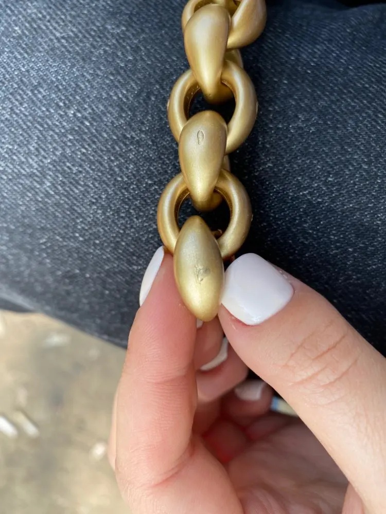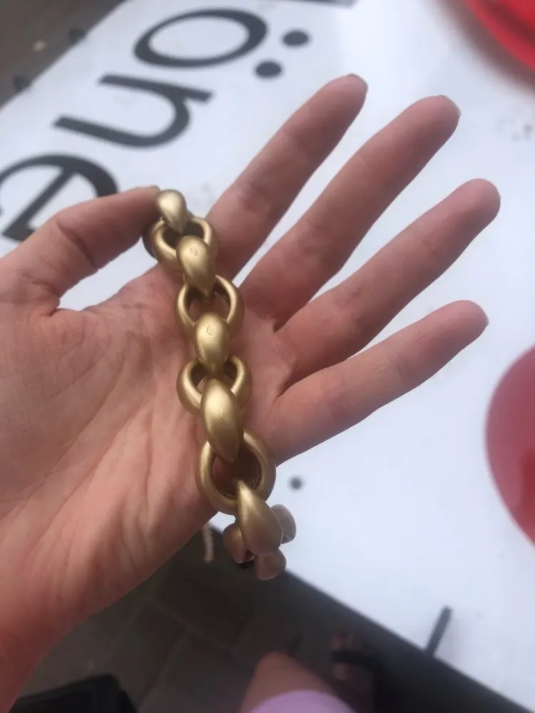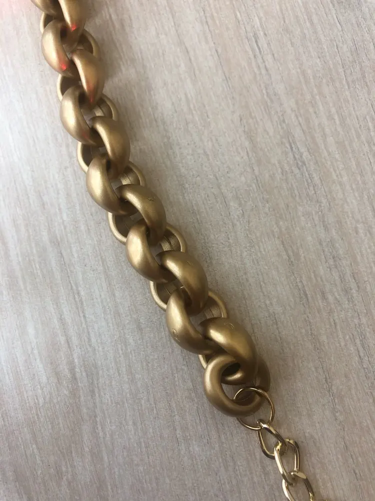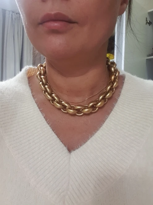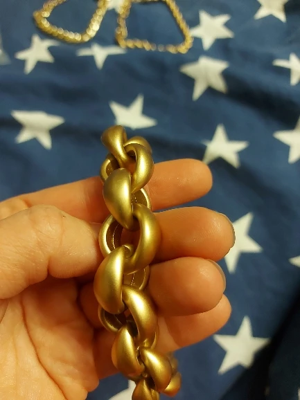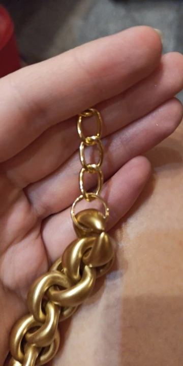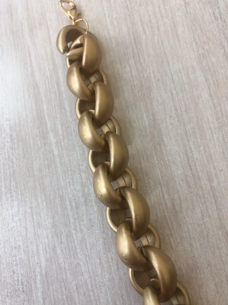 Классная цепь!!!! Выглядит шикарно, но супер легкая , пластик!) гораздо дольше прослужит, чем темнеющий металл