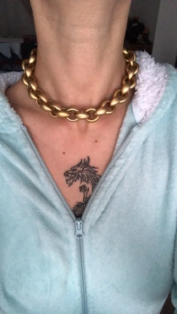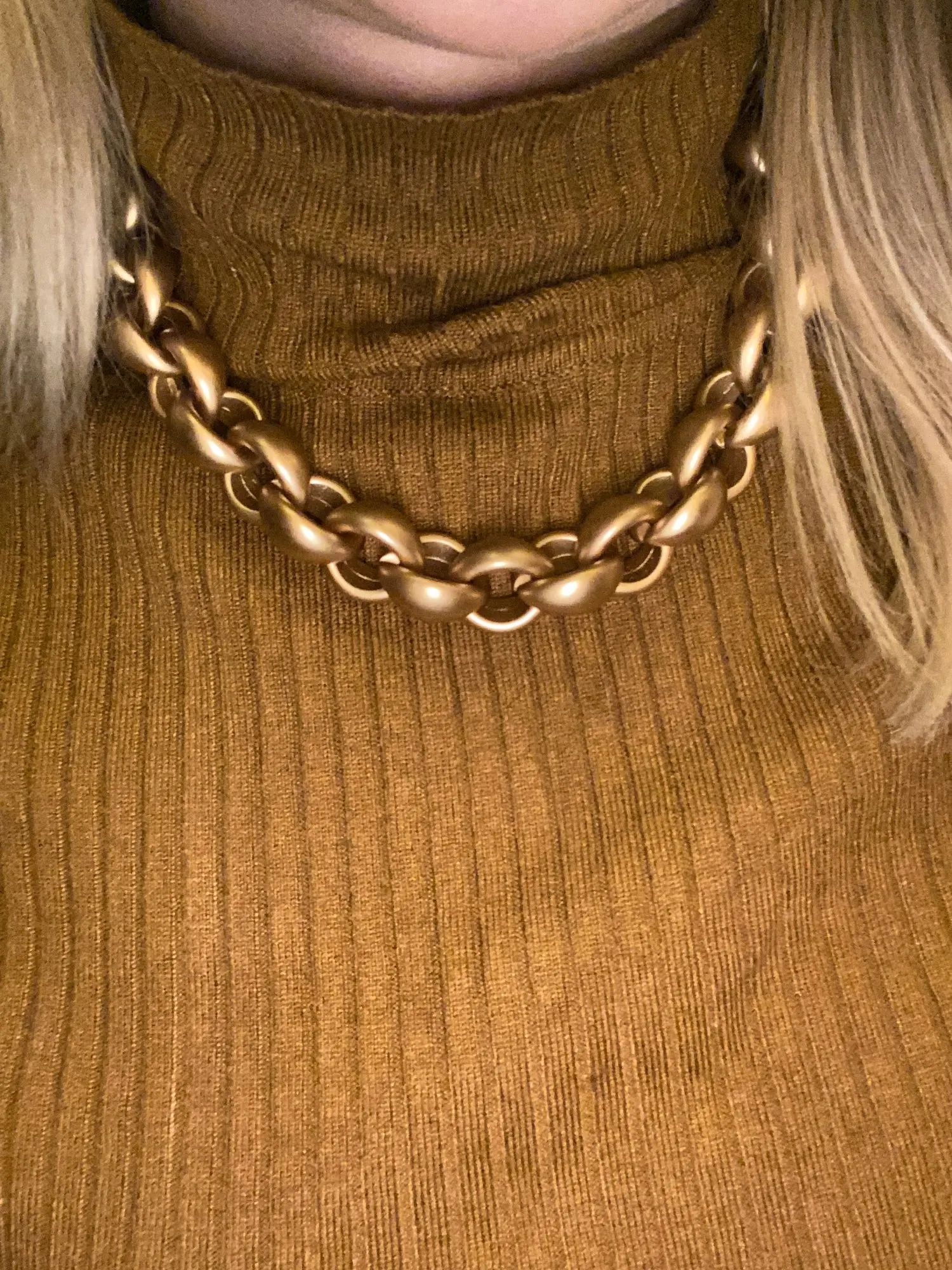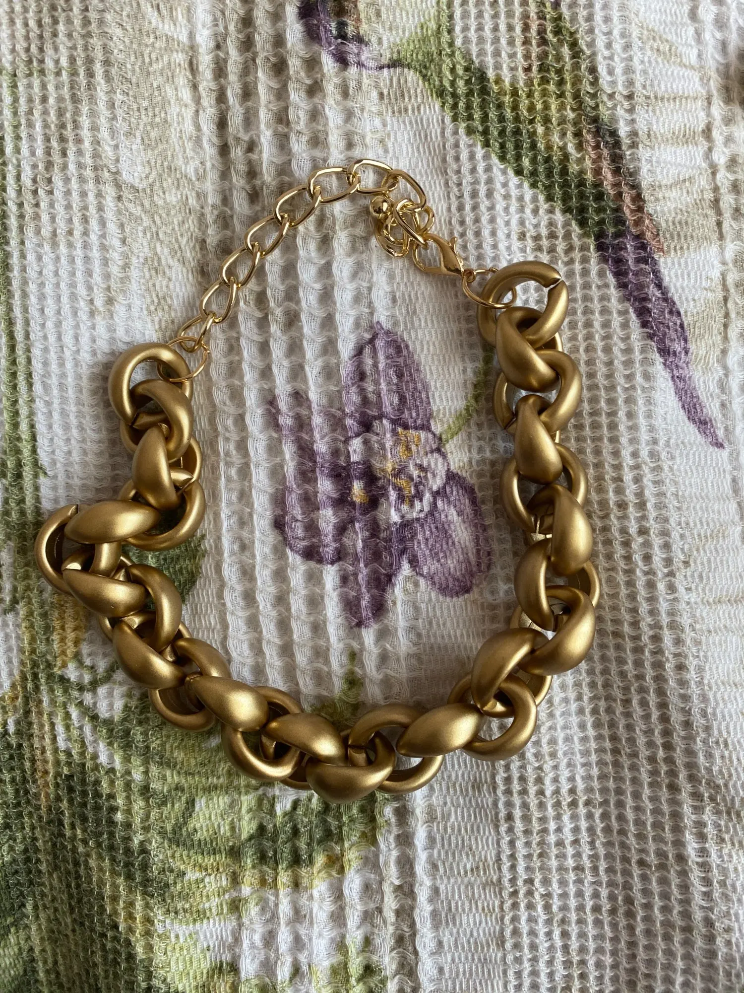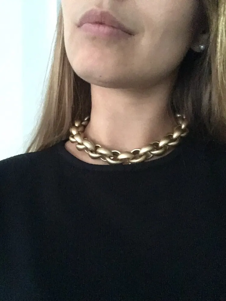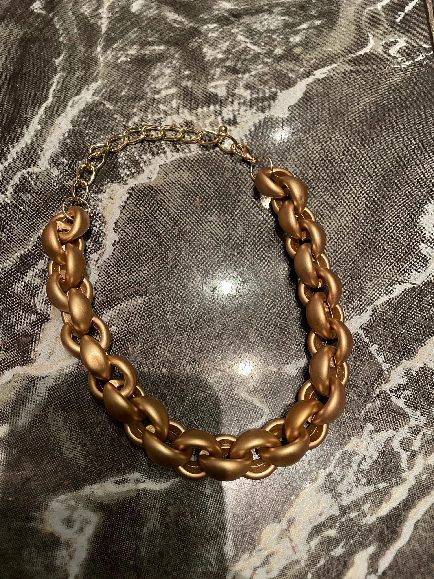 Классная цепь!!!! Выглядит шикарно, но супер легкая , пластик!) гораздо дольше прослужит, чем темнеющий металл