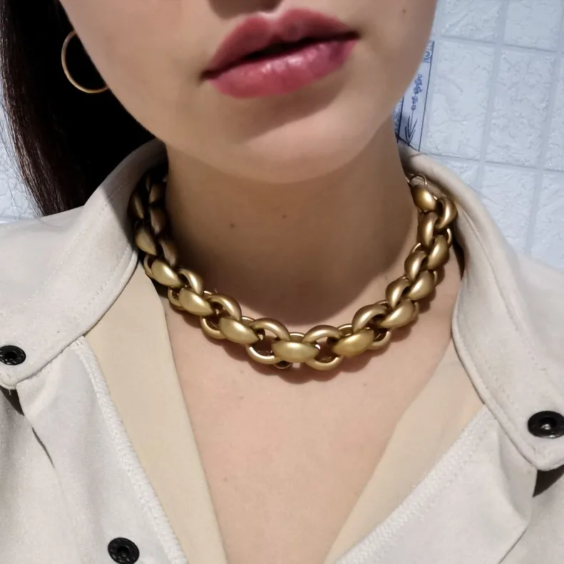 Массивное винтажное ожерелье-чокер с кулоном для женщин и мужчин, массивное ожерелье из толстой цепи с замком в стиле стимпанк