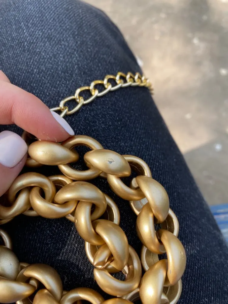 Цепь Доставка: 15 дней Мои параметры: 88 - 68- 93 cm ⠀ Мой отзыв: это пластиковая цепь, очень легкая. Отлично прокрашена во всех местах, так и не скажешь, что это пластик. Была упакована в пакетик с пупырышками, все в идеальном состоянии. Рекомендую! ⠀ Обзоры вещей с Алиэкспресс Подписывайся ✅ IG: @mari_express Telegram: Mari-Aliexpress