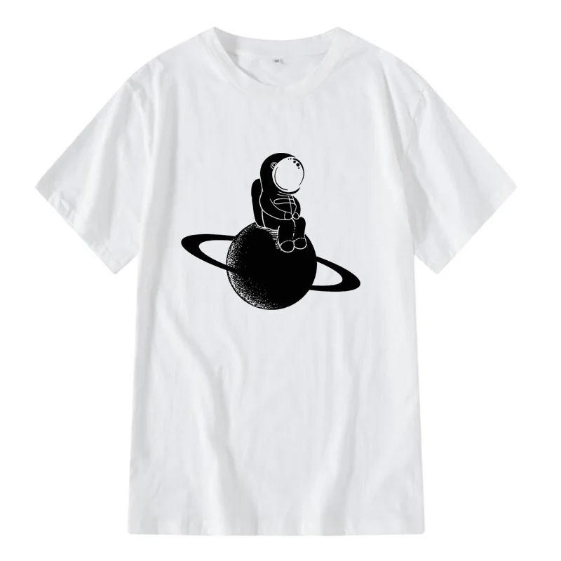 Мужская футболка из 100% хлопка, летняя мужская футболка с коротким рукавом, космическая луна, Повседневная летняя свободная Мужская футболка, крутая футболка, Мужская футболка