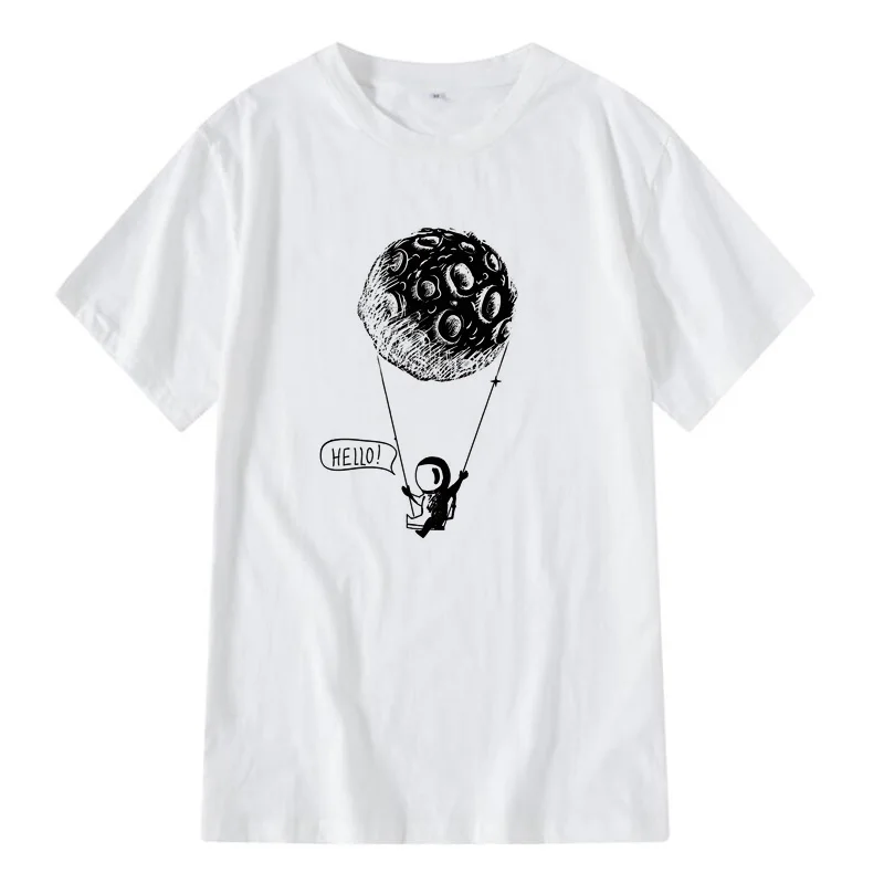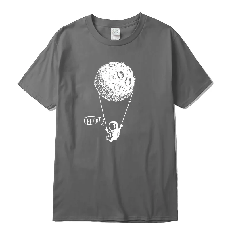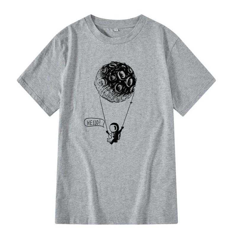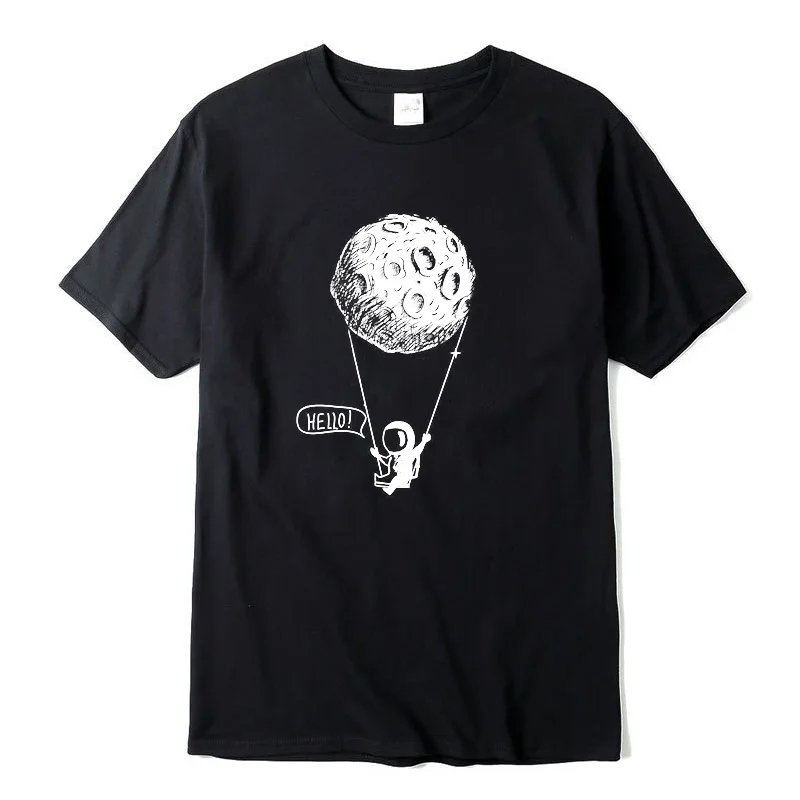 Мужская футболка из 100% хлопка, с коротким рукавом и принтом в виде Луны, Повседневная летняя свободная футболка с круглым вырезом