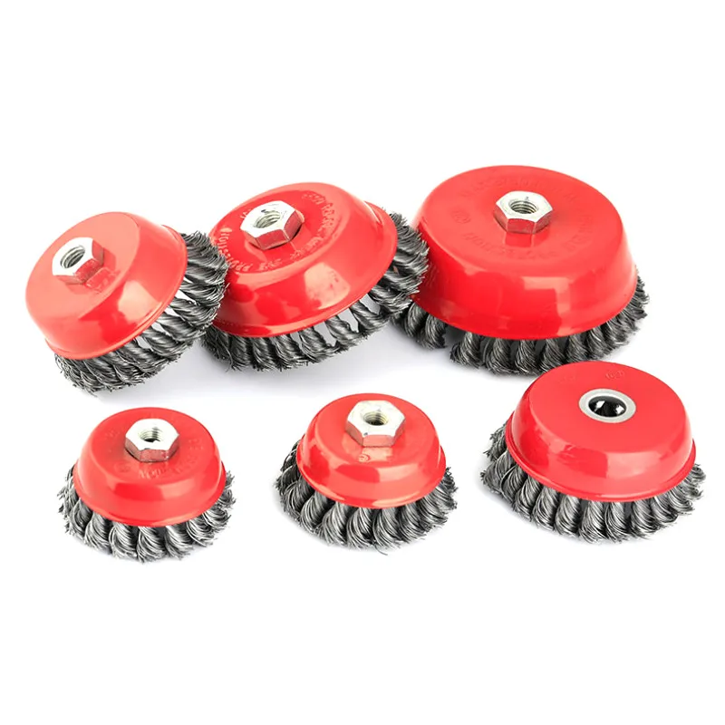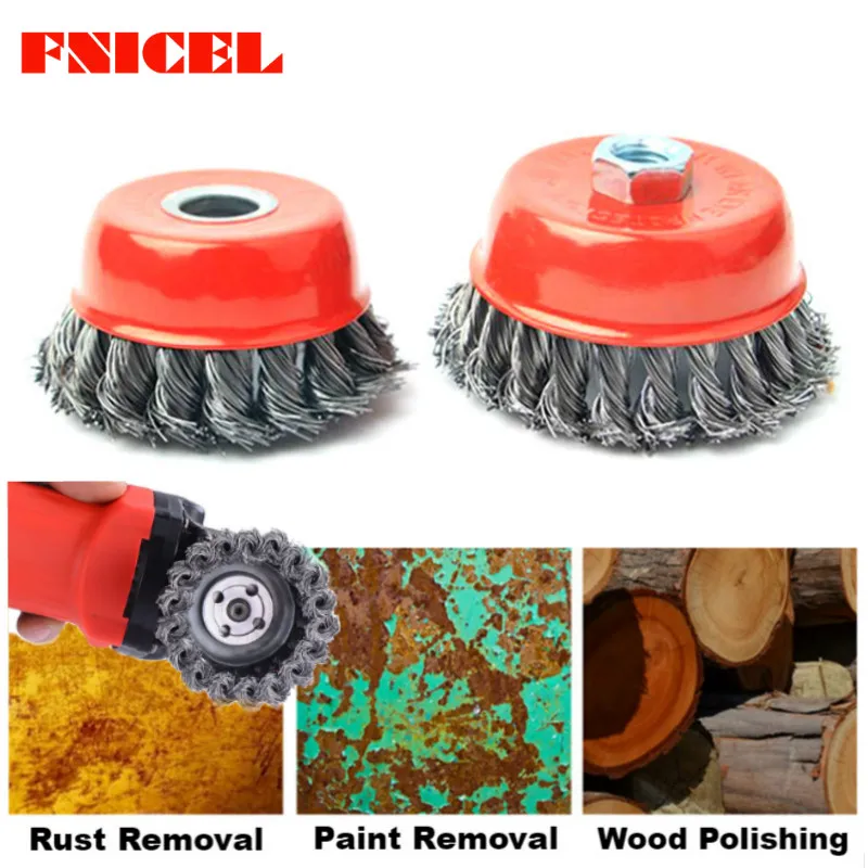 Износостойкий плоский кабель угол чашки щетка для шлифовальной машины быстрого ржавчины очистки металлических предметов Стальная проволока колеса красный прочный Краски удалить Ротари твист узел для снятия заусенцев