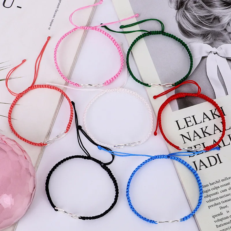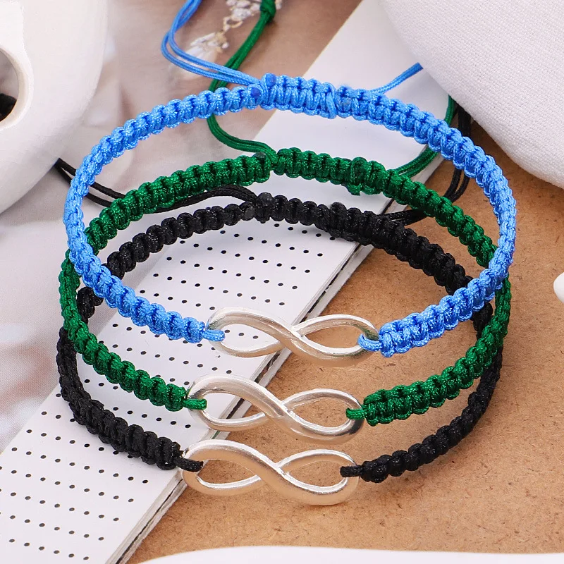 Плетеный браслет для женщин и мужчин, регулируемый веревочный браслет с 8 персонажами на удачу для влюбленных, подарок дружбы, ручная работа