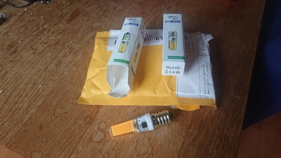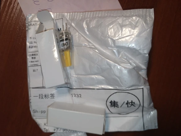 Доставка 5 недель, без отслеживания. Пакет бросили в почтовый ящик. Лампочки реально миниатюрные. Работают, но светят весьма слабо. От двух этих 3х ватных лампочек света меньше, чем от одной 4х ватной из местного магазина. Однако, учитывая цену этих ламп в 5 раз меньше 4х ватной это приемлемо.