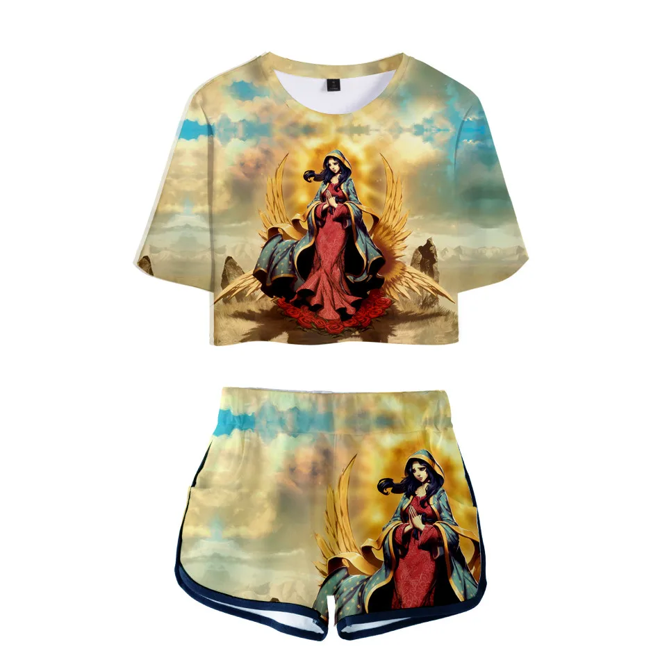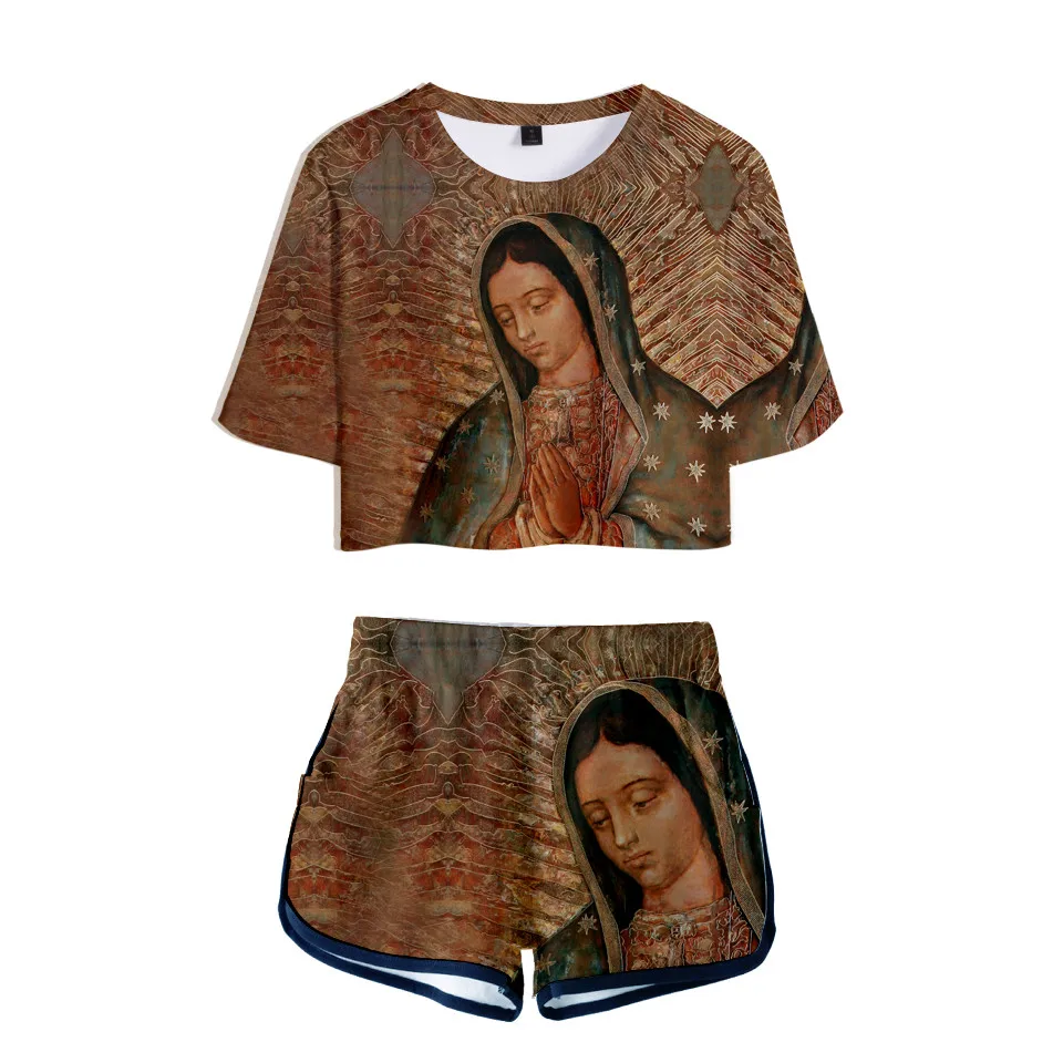 Женский комплект из двух предметов, с изображением девы Марии, католической мексиканской Девы, пикантные Клубные наряды, короткий рукав и шорты