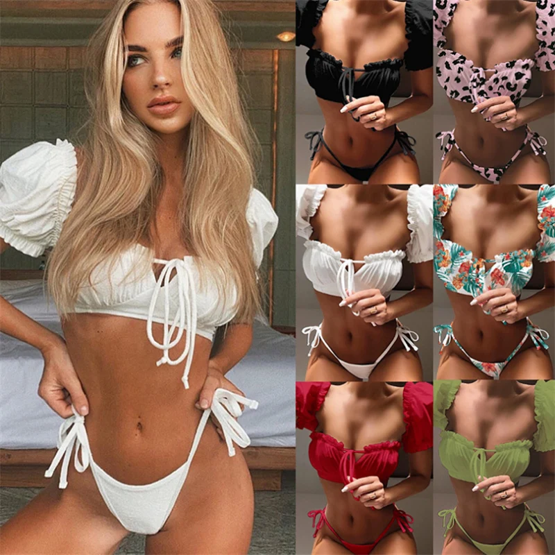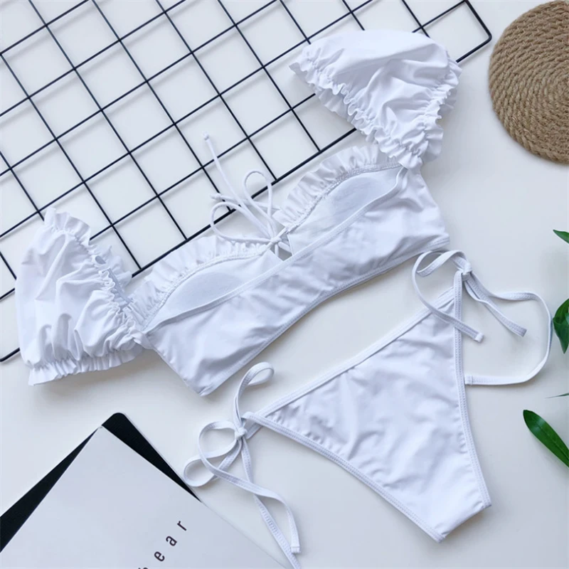 Купальник GNIM женский бандажный, бикини, пикантный купальный костюм с коротким рукавом, бразильский купальник с чашками пуш-ап, белый пляжный костюм, 2019