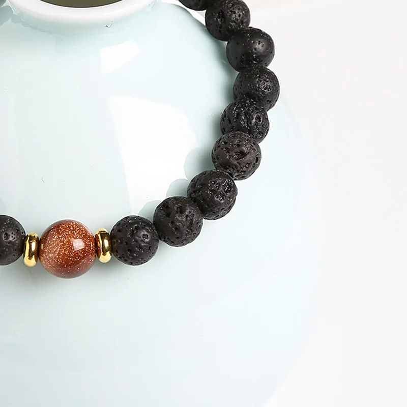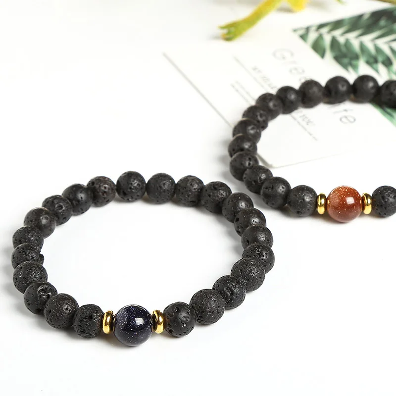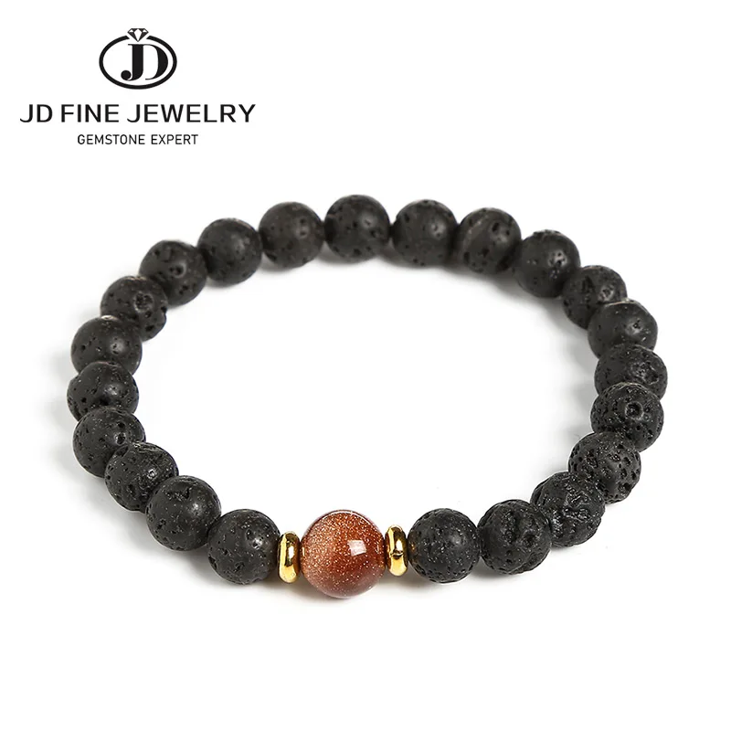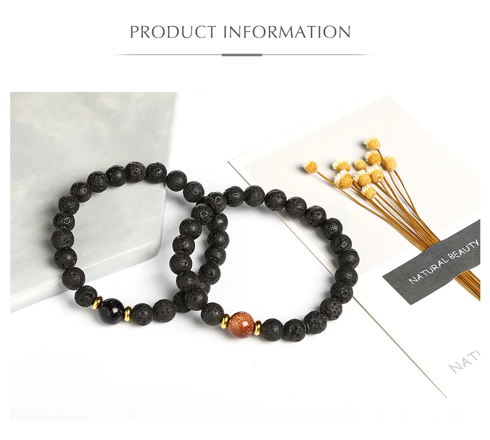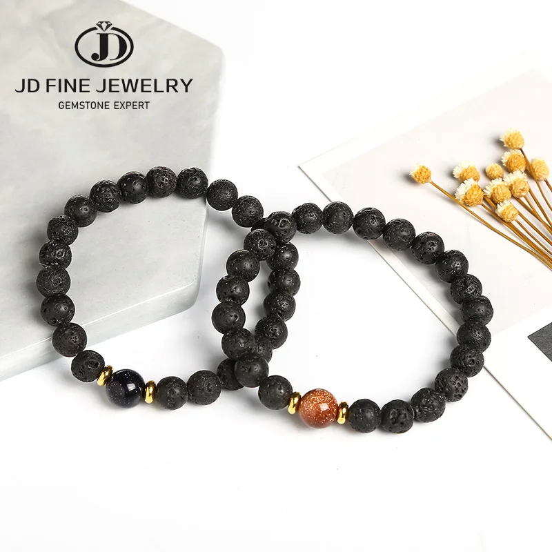 Браслет JD 8 мм из лавового камня, голубойзолотой песок, модные ювелирные изделия, браслет Galaxy Solar System для женщин или мужчин 2021