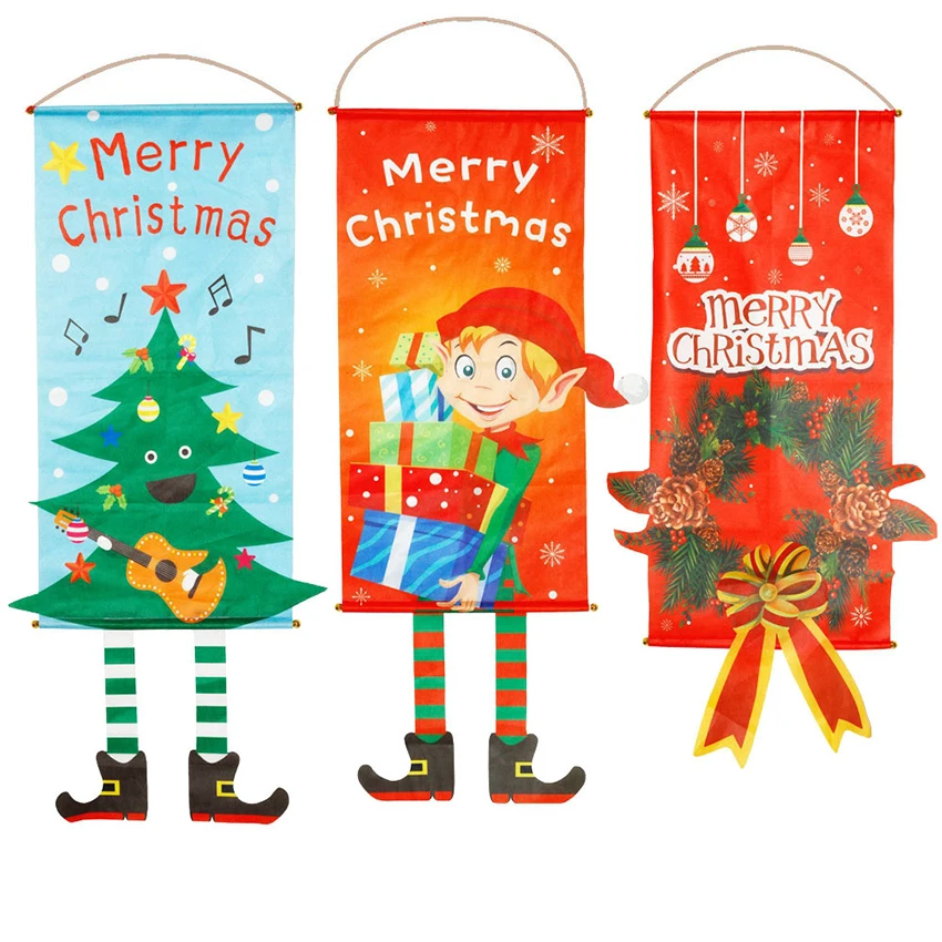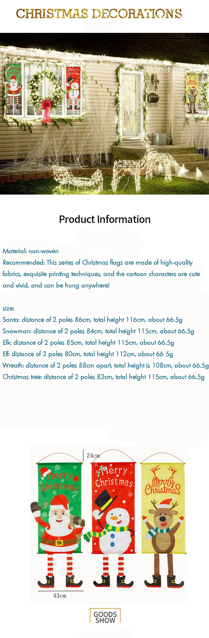 Рождественский домик, флаг на дверь и окно, венок Санта-Клауса, снеговика, лось, Рождественский подвесной знак, баннер, рождественские украшения для помещений и улицы