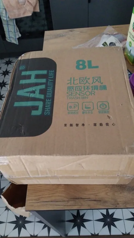 Доставка долгая, почти 2 месяца. упаковка добротная, товар не поврежден. Батареек (2 шт.АА) в комплекте нет. Прилагается инструкция на китайском и набор (4шт.) угольных фильтров для поглощения запаха в ведре. Работает четко. Открывается по датчику движения и через секунд 10 крышка сама закрывается. Если в процессе эксплуатации возникнут проблемы, отзыв дополним. Пока мы в восторге)