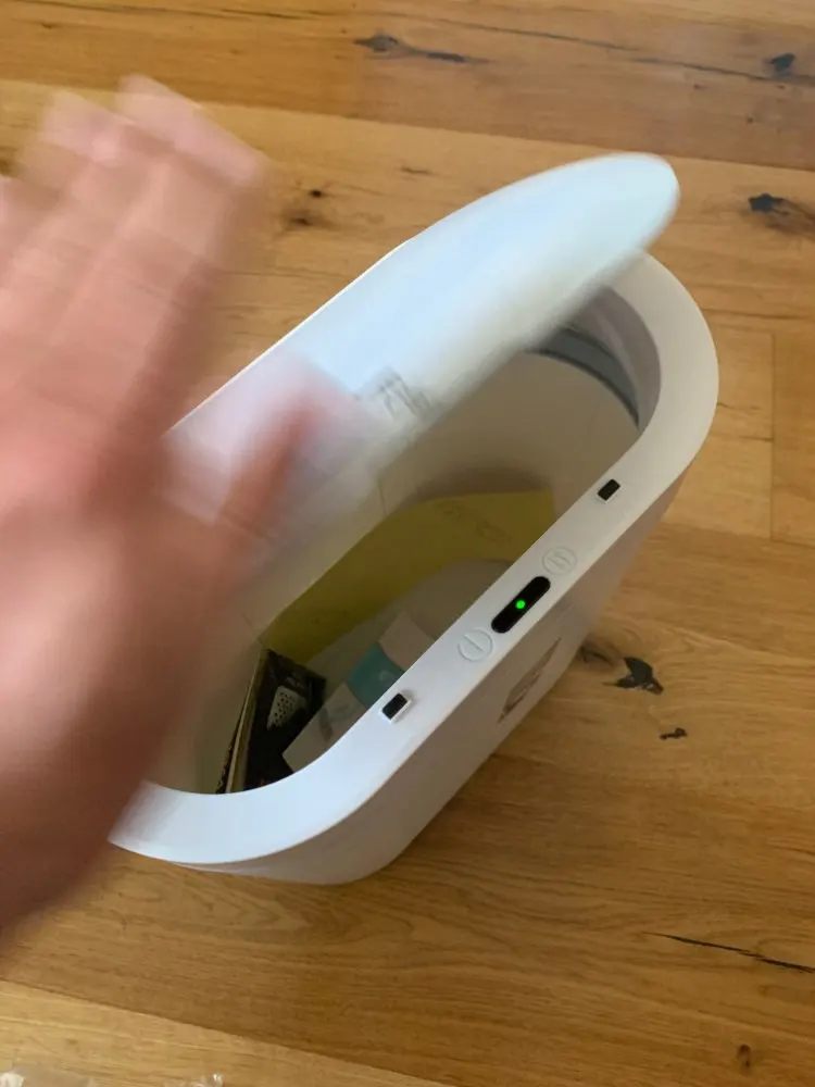 Мусорное ведро понравилось, но! Если сверху ведра есть столешницы даже на высоте метр, датчик думает, что это "рука". В общем, крышка постоянно открыта.