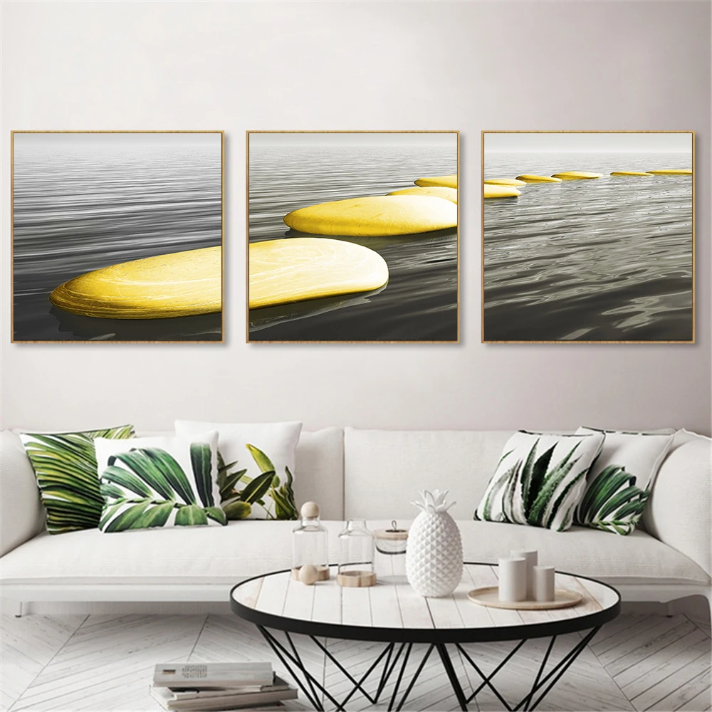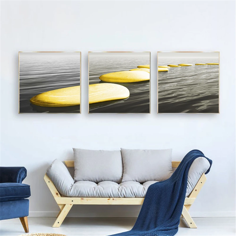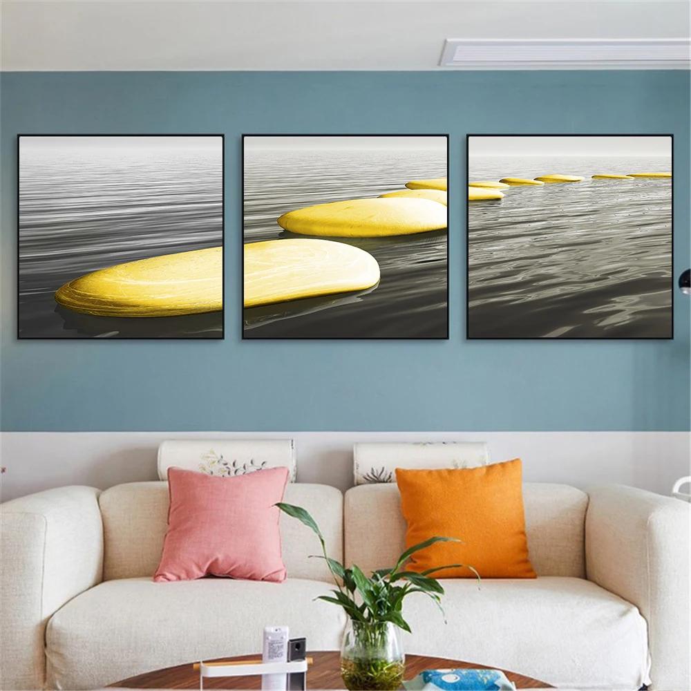 Настенная живопись на холсте 3 панели черный белый желтый камень скандинавские плакаты и принты настенные картинки для гостиной куадро Материал:Холст