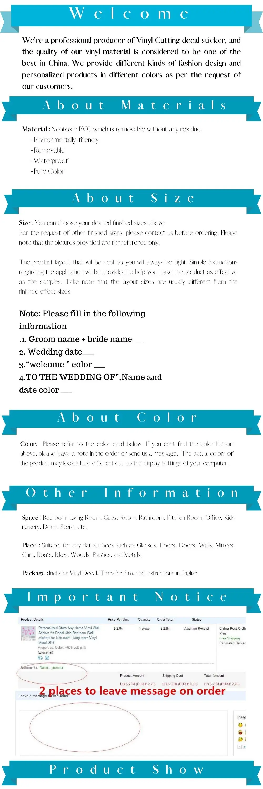 Добро пожаловать на свадьбу виниловые наклейки на стену Персонализи...