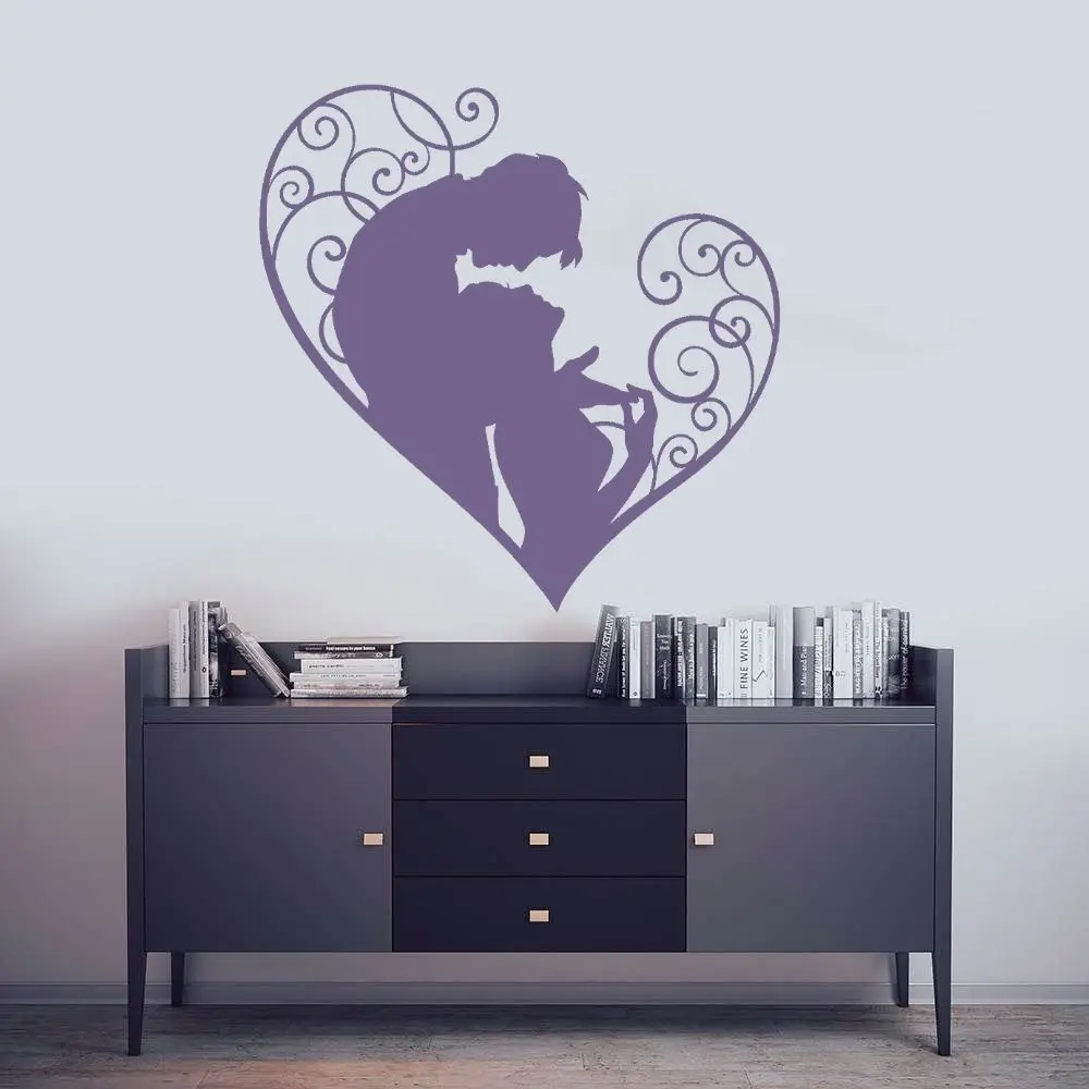 Милая пара в стикер на стену в форме сердца, наклейка на свадьбу, украшение для дома, спальни, A00689