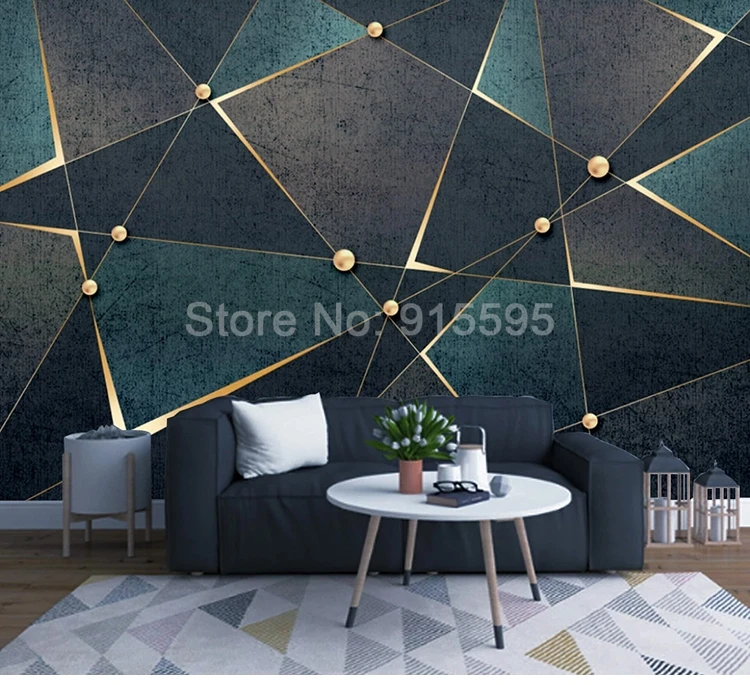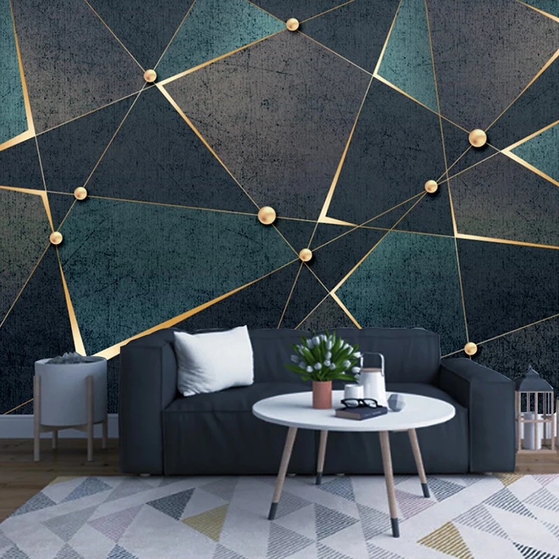Пользовательские 3D фотообои креативные золотые абстрактные Геометрические линии росписи современный кабинет Гостиная ТВ фон домашний декор