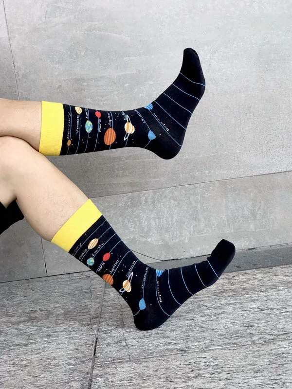 Носки PEONFLY мужские хлопковые, милые Мультяшные космические, с рисунком инопланетянина, планеты, звезд, креативные Смешные счастливые носки в стиле Харадзюку