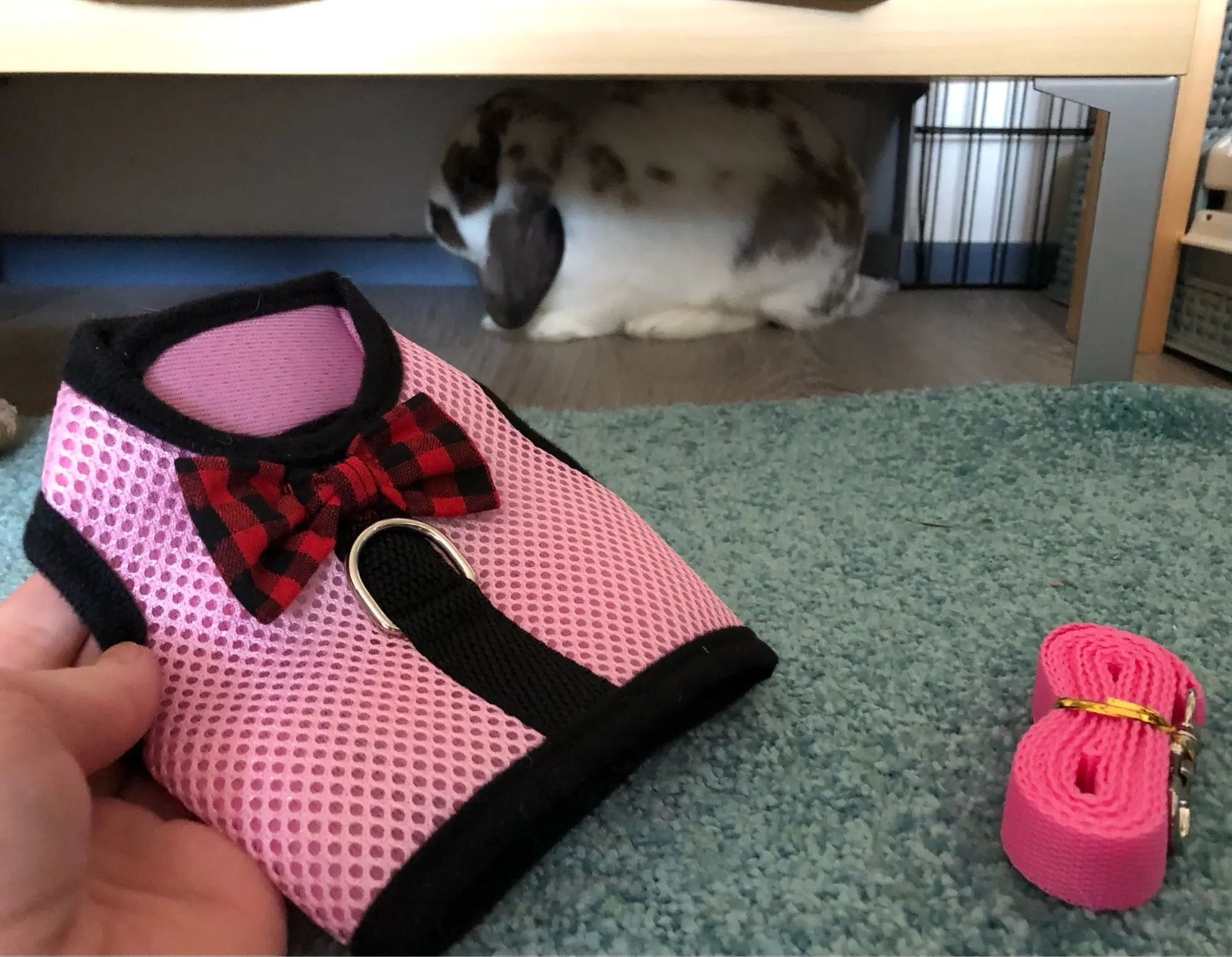 Es tal y como lo describe el vendedor, bonito y de buena calidad. A mi conejo no le gusta que se lo ponga, se lo intenta quitar (si se ajusta correctamente no se lo podrá quitar). Voy a comprar otro arnés más ligero que no sea tan voluminoso a ver si así se siente mejor.