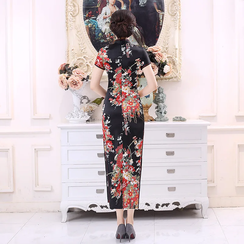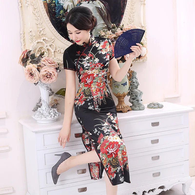 Традиционное китайское платье с цветочным принтом, элегантное облег...