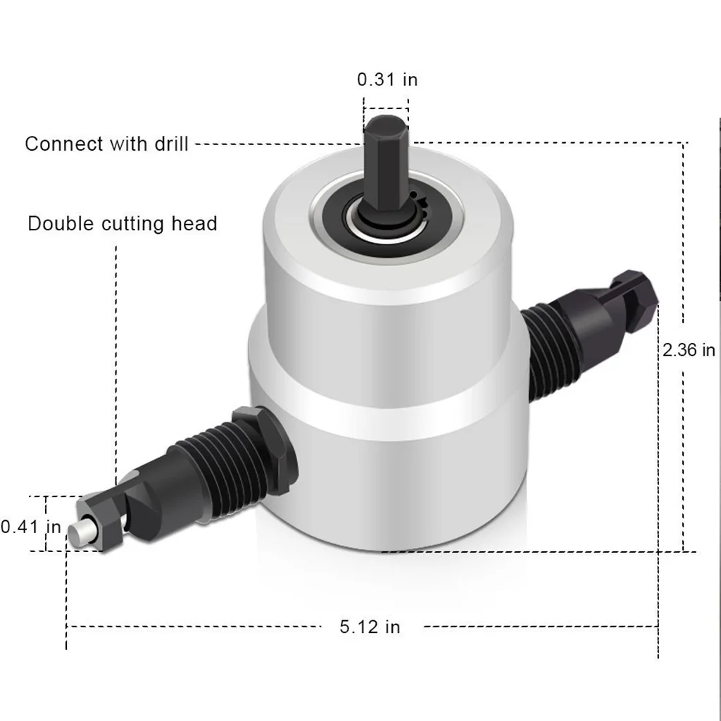 Особенности:1. Две головки резака с регулируемой головкой.2. Режущая головка может быть расположена на 360 градусов в любом направлении.3. Опционально 8 мм электрическая или пневматическая дрель, скорость 1500-3000 об/мин.4. Минимальный радиус резки 12 мм.5. Допустимый диапазон толщина резки: стальная пластина: 1,8 мм пластина из нержавеющей стали: 1,2 мм, Медь алюминиевая пластина: 2 мм, Пластик фанеры: 2 мм.Описание:1. Режущая работа становится проще, быстрее и безопаснее с этим двойным головным ниблером из листового металла, легко помещается в любую стандартную дрель. Он может скользить по материалу толщиной до 2 мм и создает точность, неровные края.2. Листовой металл, гофрированный материал, трубы, сложные профили, материал с порошковым покрытием, нержавеющая сталь, медь, алюминий, пластик, стекловолокно. Даже мягкие материалы, такие как деним, кожа, бумага или карта. Он настолько универсален, и с легкостью справляется со всемСпецификация:Материал: нержавеющая стальЦвет: серебристый и черный