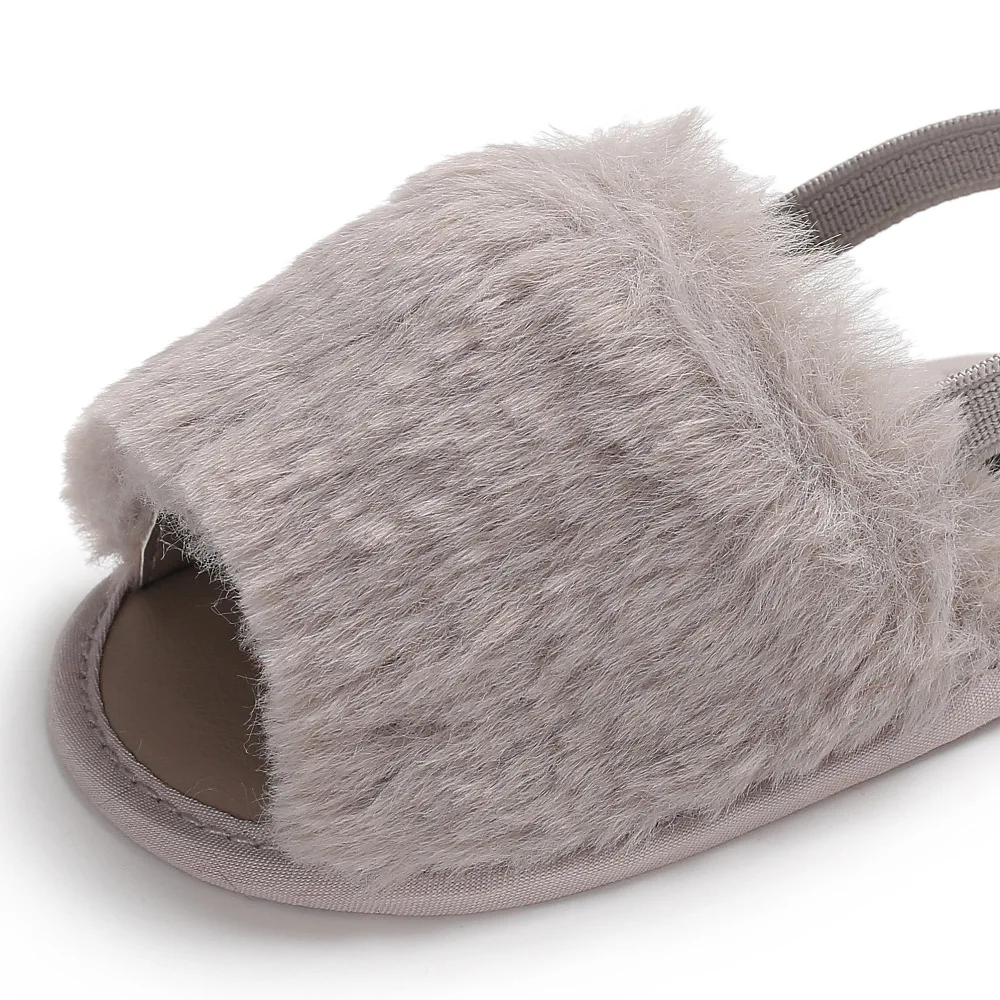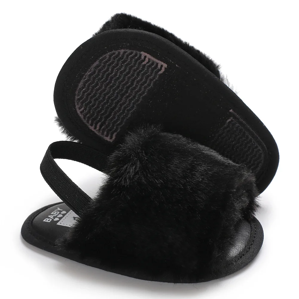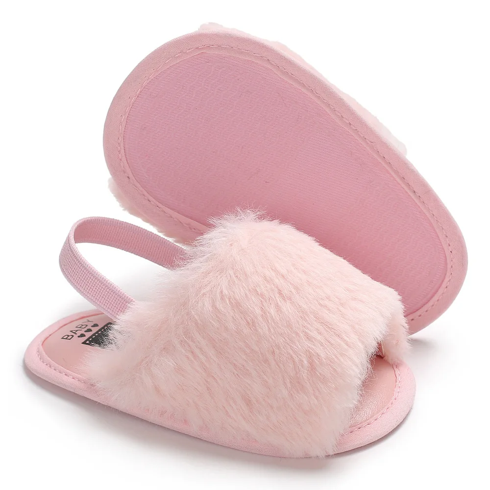 Туфли для новорожденных девочек, меховые пушистые тапочки, Симпатичная зимняя мягкая подошва, комнатные мокасины для малышей, обувь для кроватки