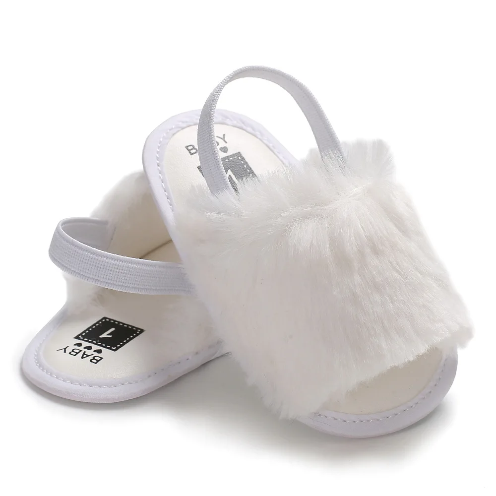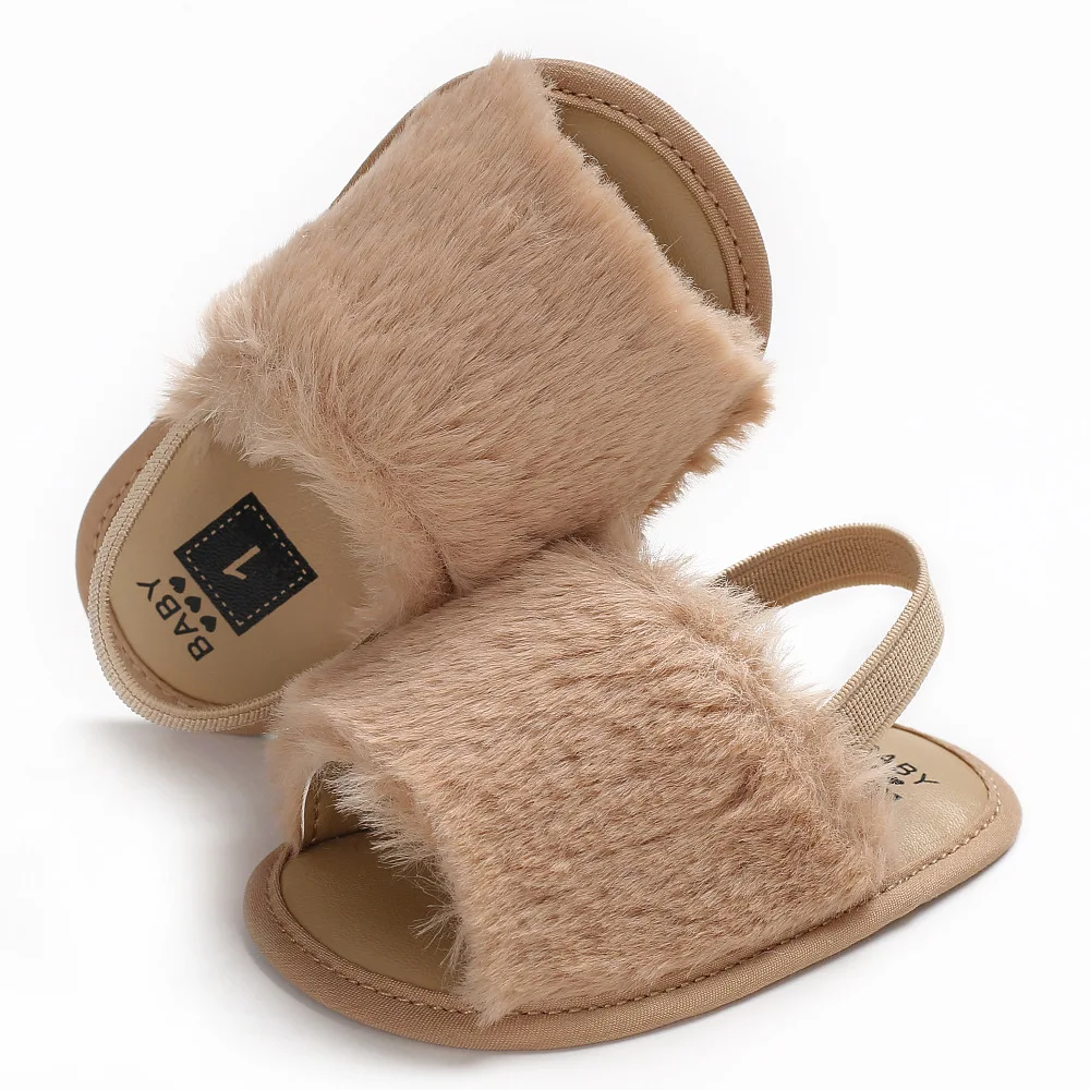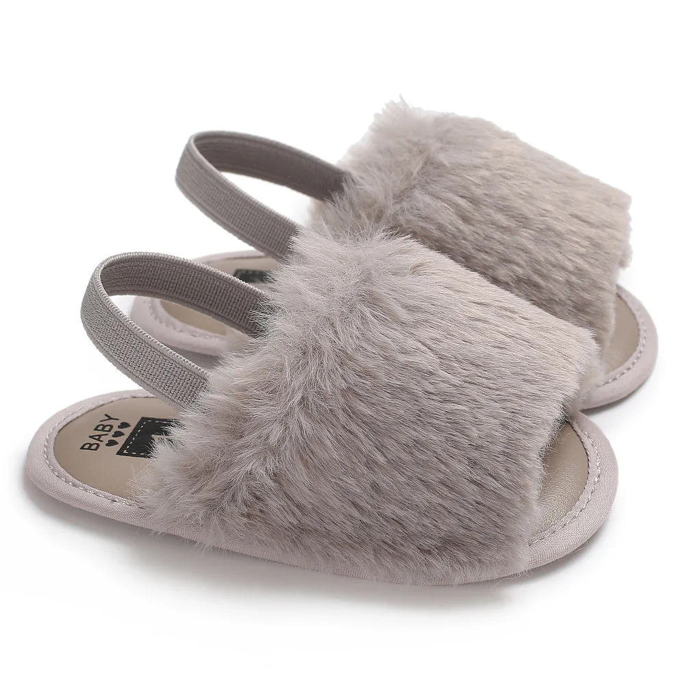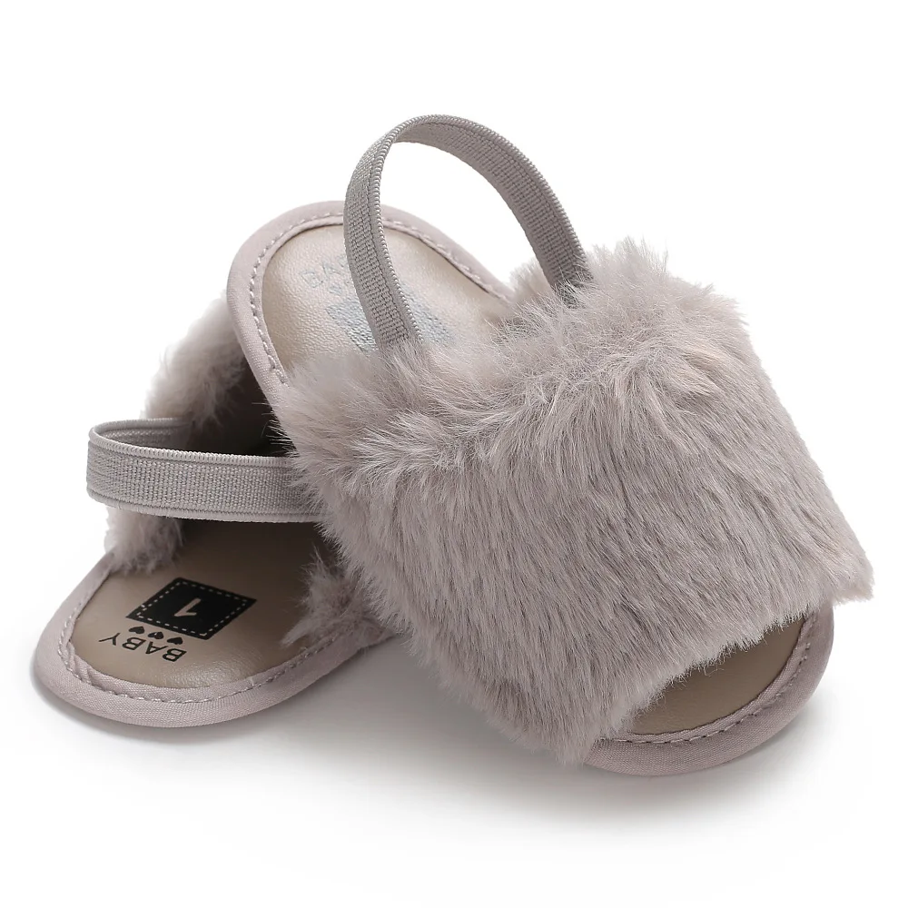 Туфли для новорожденных девочек, меховые пушистые тапочки, Симпатичная зимняя мягкая подошва, комнатные мокасины для малышей, обувь для кроватки