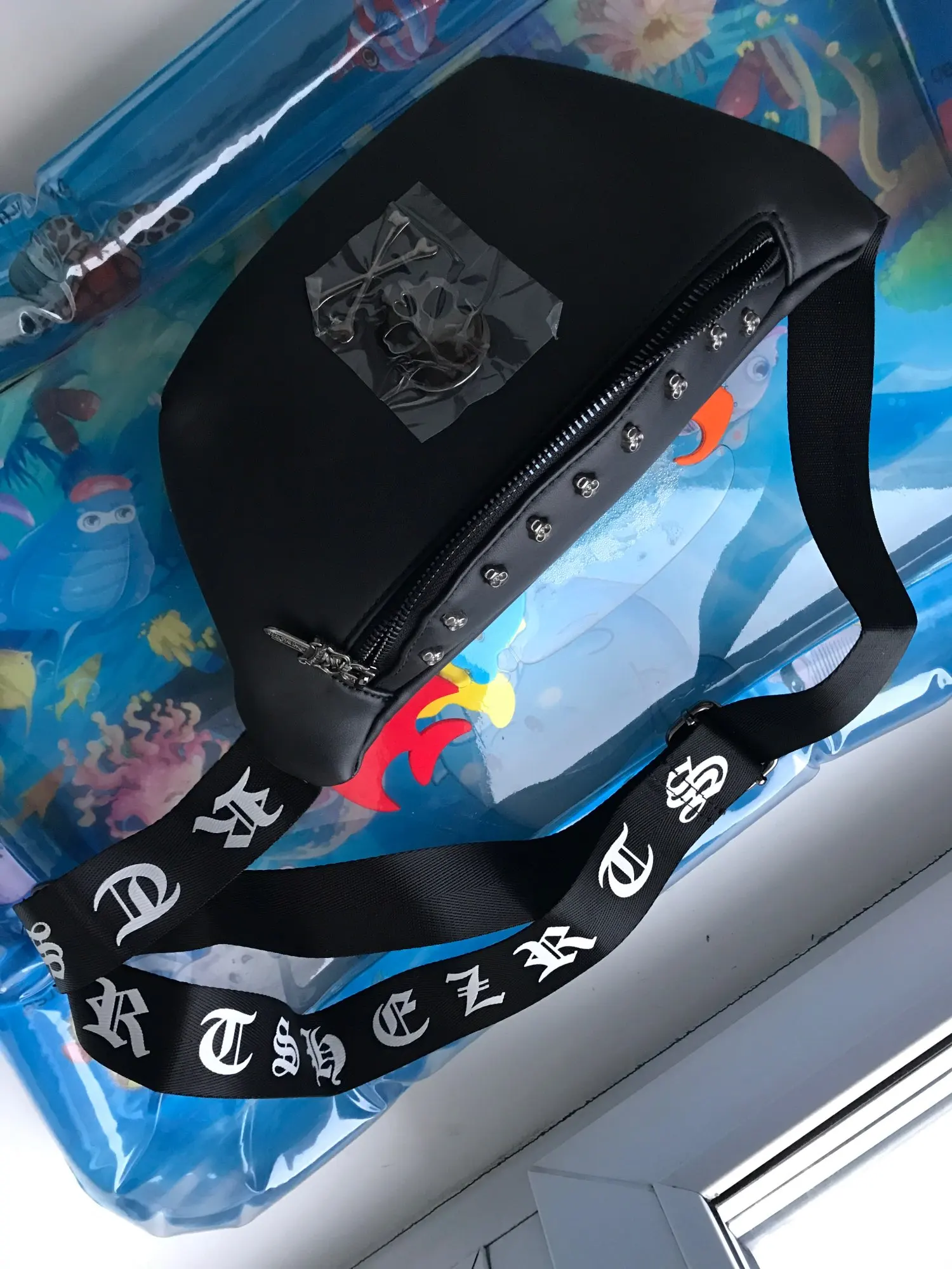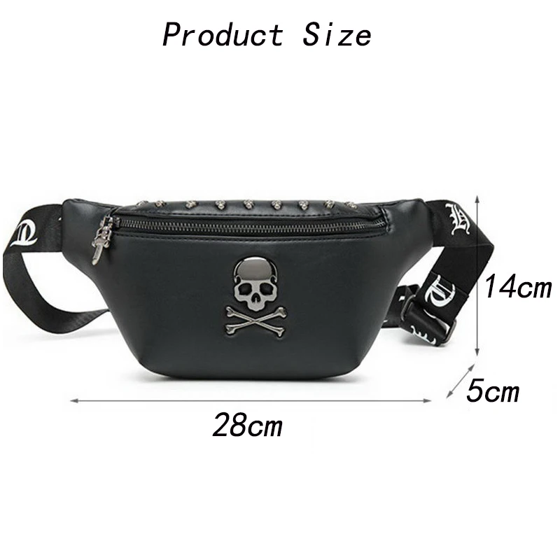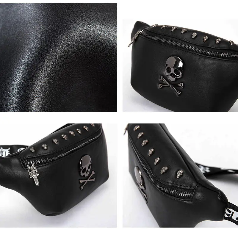 Поясная Сумка унисекс Mihaivin в стиле рок с черепом, роскошная нагрудная Сумочка с заклепками, кожаная бананка в стиле панк, Черная Мужская бананка