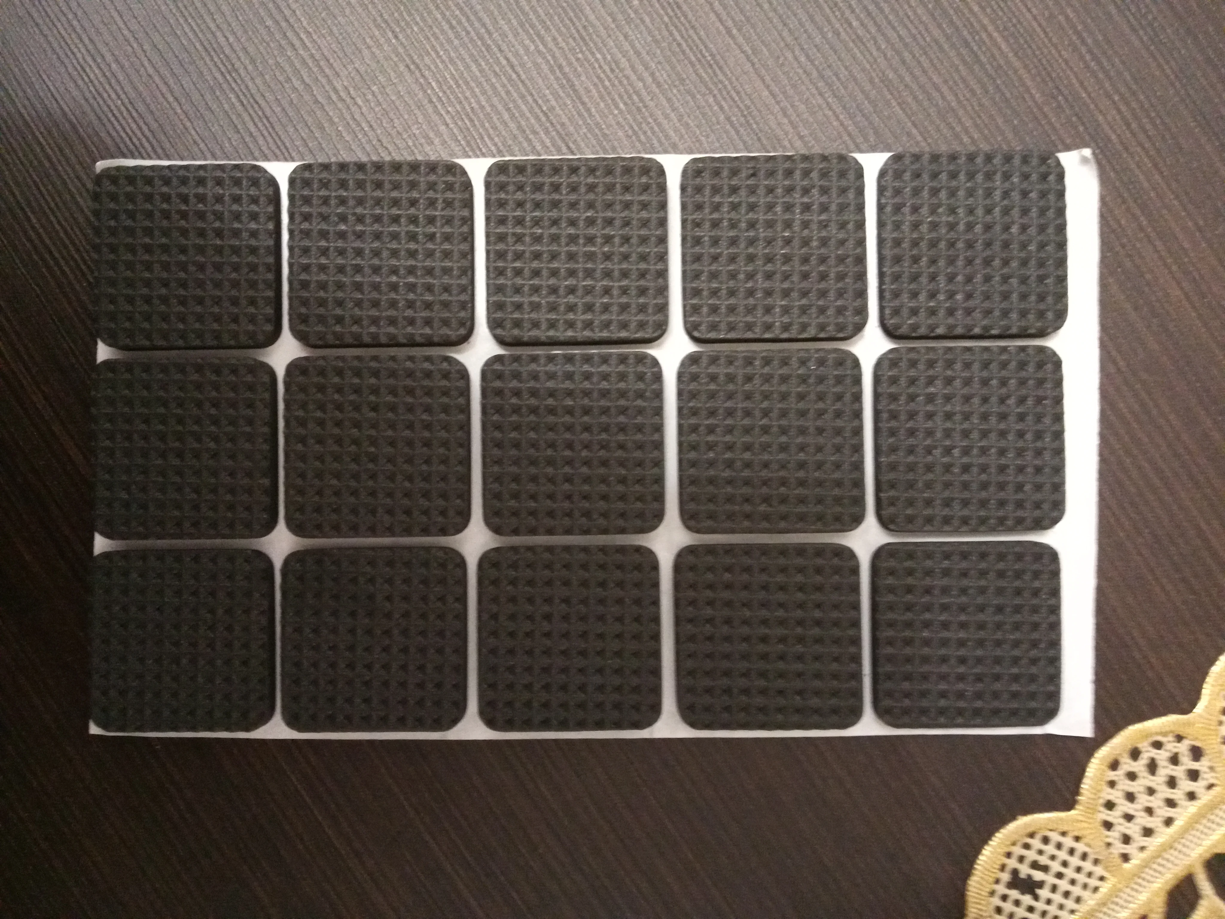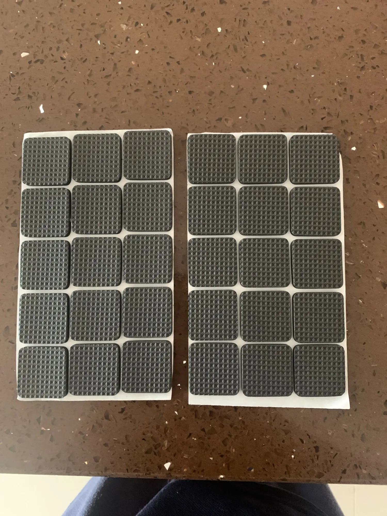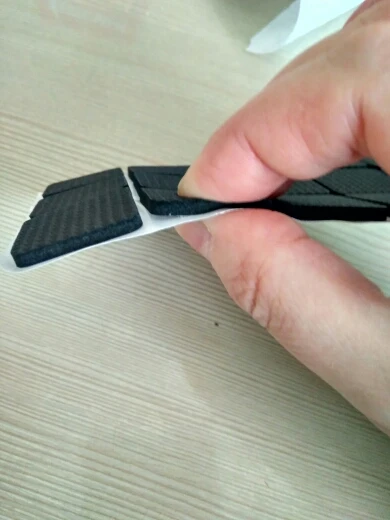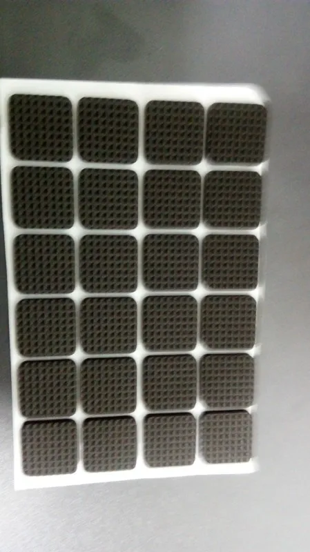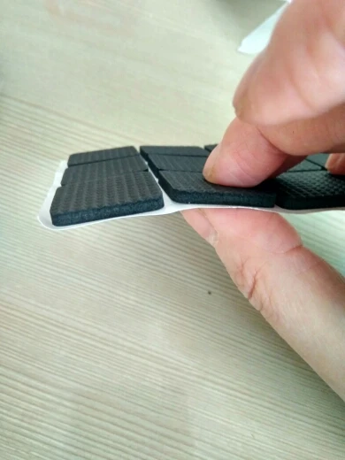 Поскольку стулья все с разными ножками купил листом и нарезал сам. Листка хватает на 3 стула и стульчик. Лучше (гигиеничней) войлока. Довольно быстро спресовывается. Самоклейка норм. Доставка довольно быстрая - 3 недели.