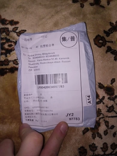 Страна: RU Color: 5 Доставка: Cainiao Expedited Economy 25.01.2021