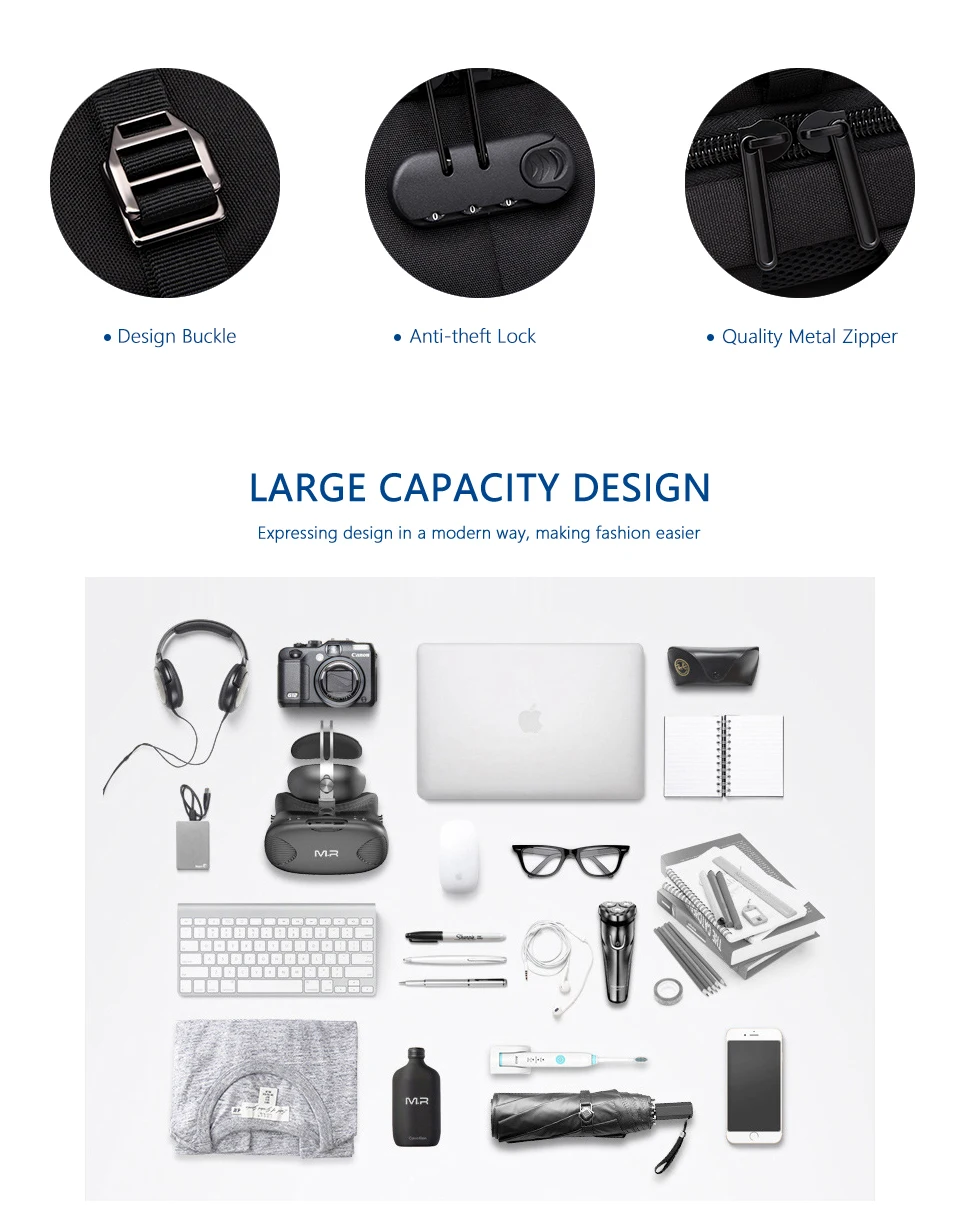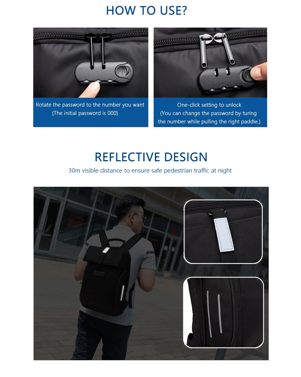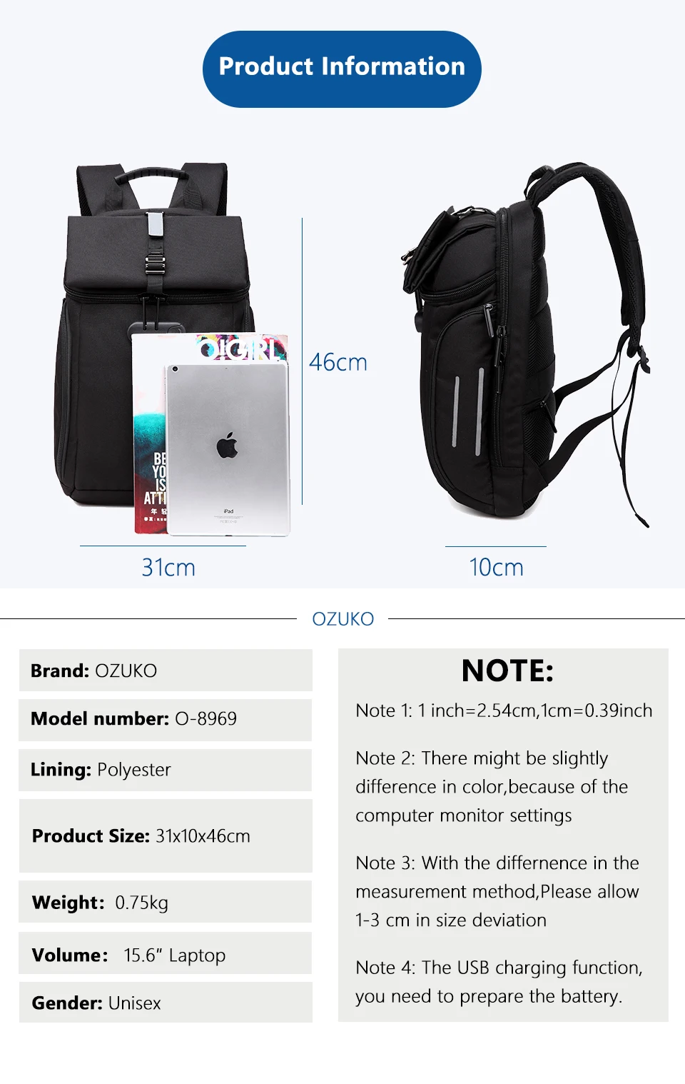Рюкзак OZUKO мужской, для ноутбука, водонепроницаемый, с защитой от кражи