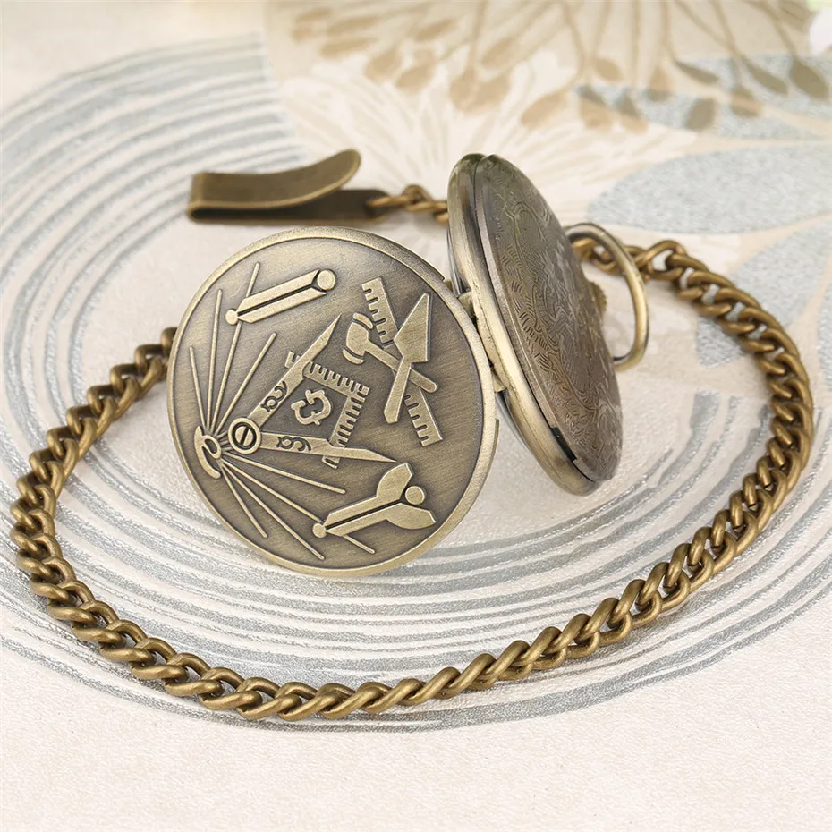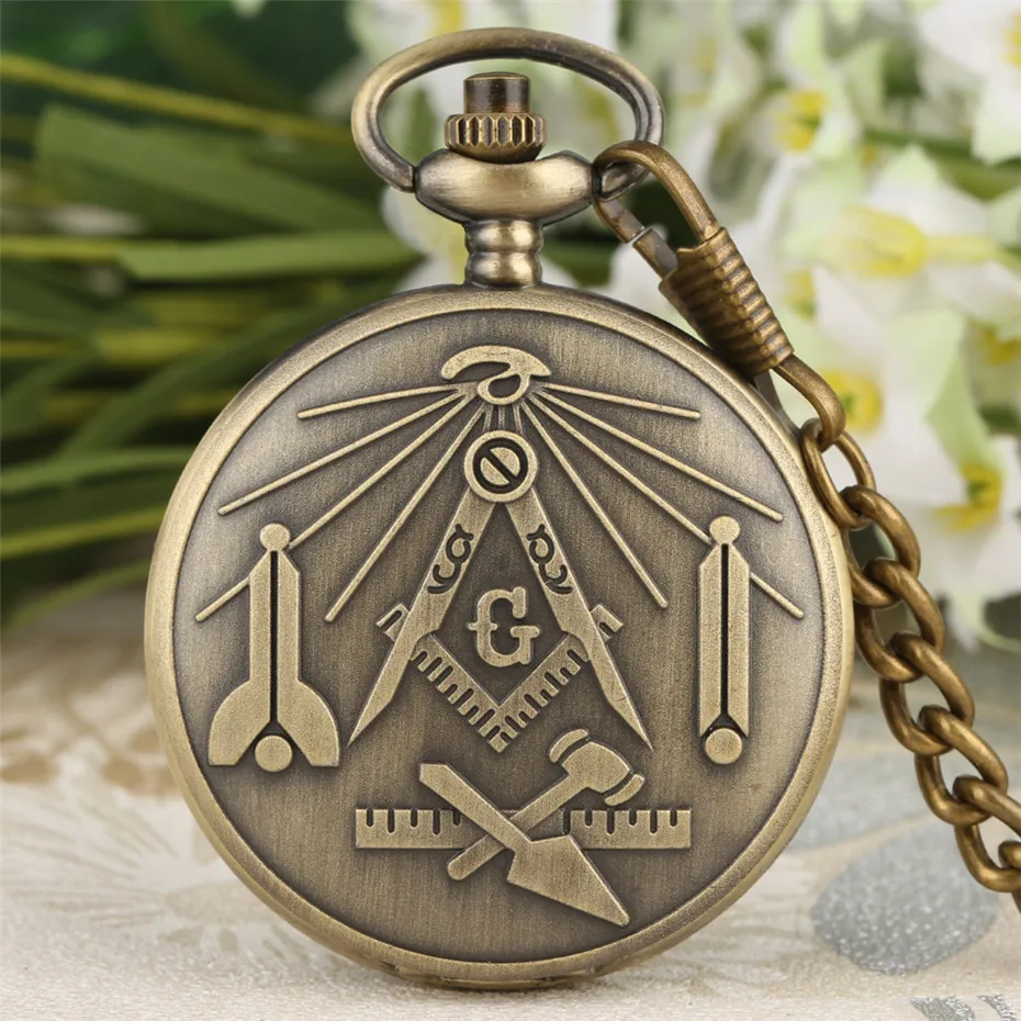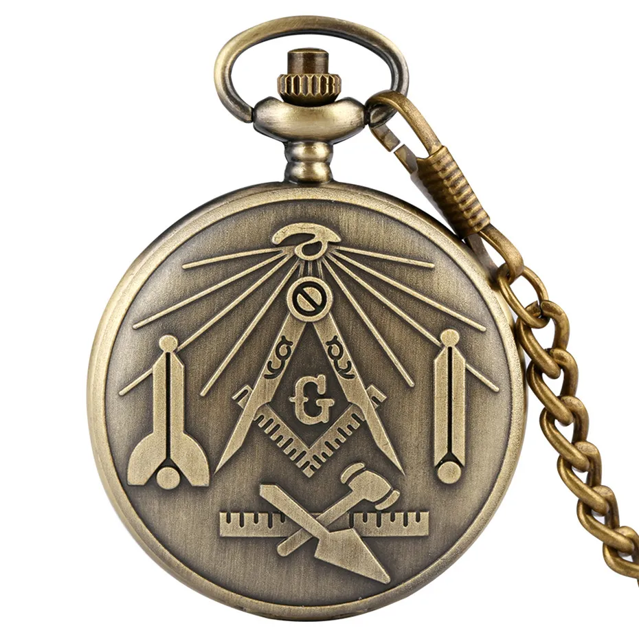 Часы наручные в стиле G, бронзовые Кварцевые карманные ретро-часы с масонской тематикой, с медной цепью в стиле панк, с антикварным циферблатом, с арабскими цифрами