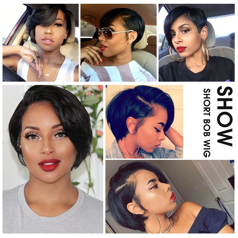 Бразильский короткий парик Боб фальшивой, парики из человеческих волос на сетке спереди для черных женщин, предварительно выщипанные волосы Remy, бесплатная доставка