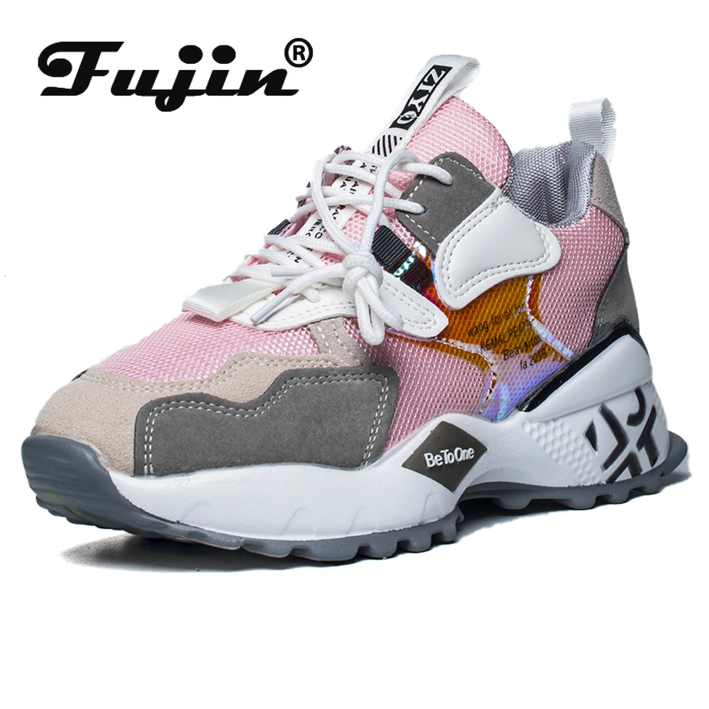 Женские кроссовки на платформе Fujin, повседневные дышащие кроссовки на плоской подошве со шнуровкой на весну и осень 2020