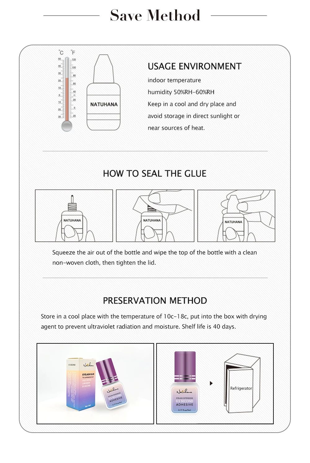 > Достоинства: 3-4 недели длительность, без запаха> Применение: наращивание ресниц.> Время установки: 2-3S> Срок действия: 6 месяцев до открытия. 4-6 недель после открытия.> Черный, для наращивания ресниц клей Рекомендуемая Влажность: 55%-60%.Рекомендуемая комнатная температура: 18 ℃ ~ 25 ℃.Хранение: положите в холодильник. Ингредиент: этилцианакрилат, гидрохинон, поли (Метилметакрилат), экстракт ромашки, черный углерод.
