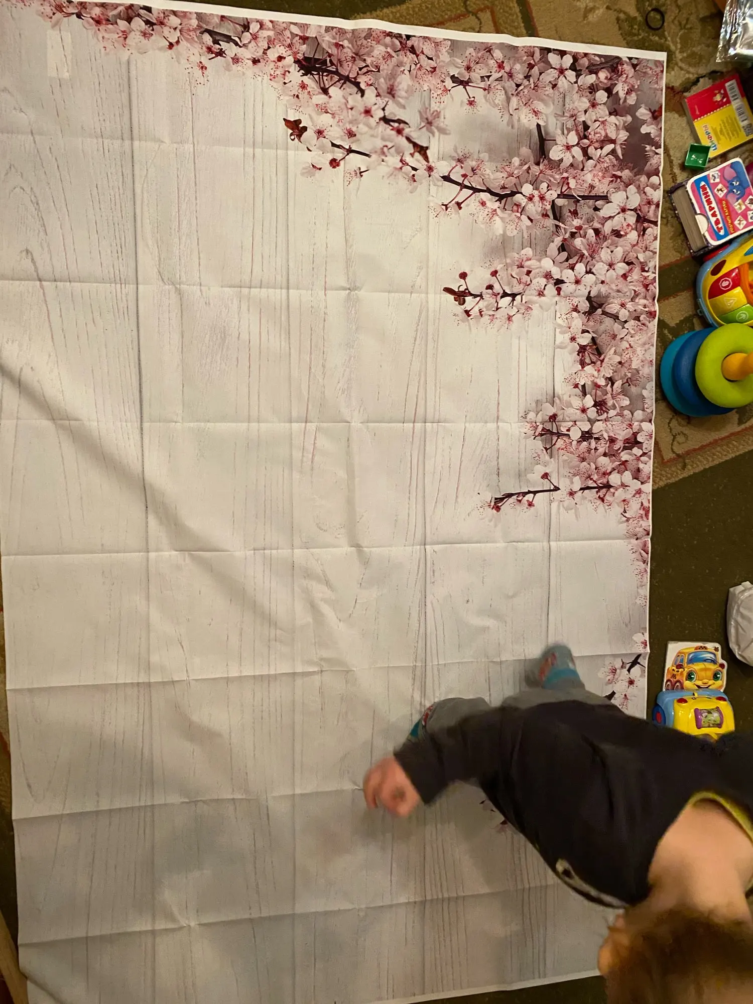 Всё таки не получилось отутюжить фон. С краю испортила - сморщился, надо утюг на самый минимум выставлять. Как и писали в отзывах, сложен так, что не разгладить. Качество в принципе неплохое, чёткость для мелких предметов не подойдёт. И размер 90 *60 ожидала, что войдёт больше предметов))