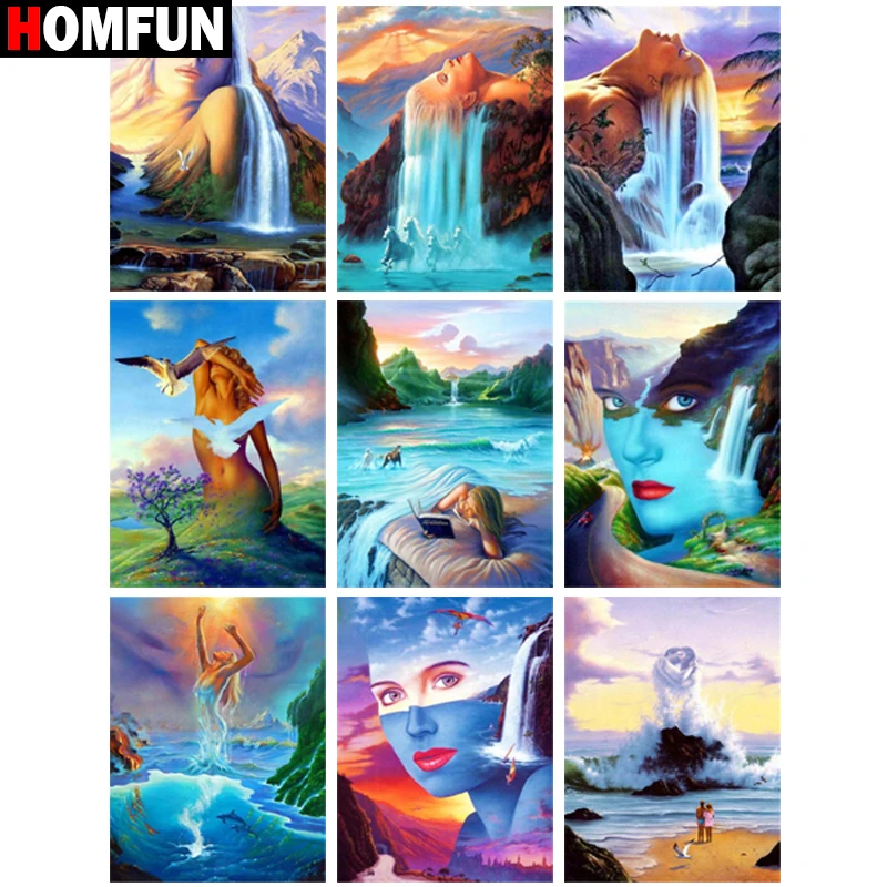 Алмазная 5D Вышивка HOMFUN Водопад, полноразмерная круглаяквадратная алмазная живопись сделай сам, вышивка крестиком, домашний декор