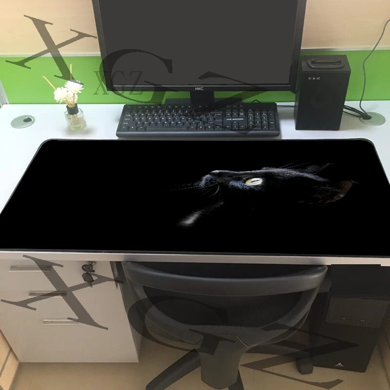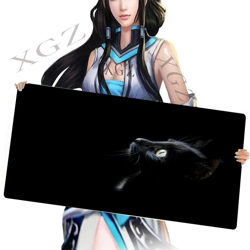 Большой черный коврик для мыши XGZ в стиле аниме с фиксируемой кромкой, Настольный коврик с милым котом для ноутбука, резиновый Универсальный нескользящий 60x390x40 Xxl