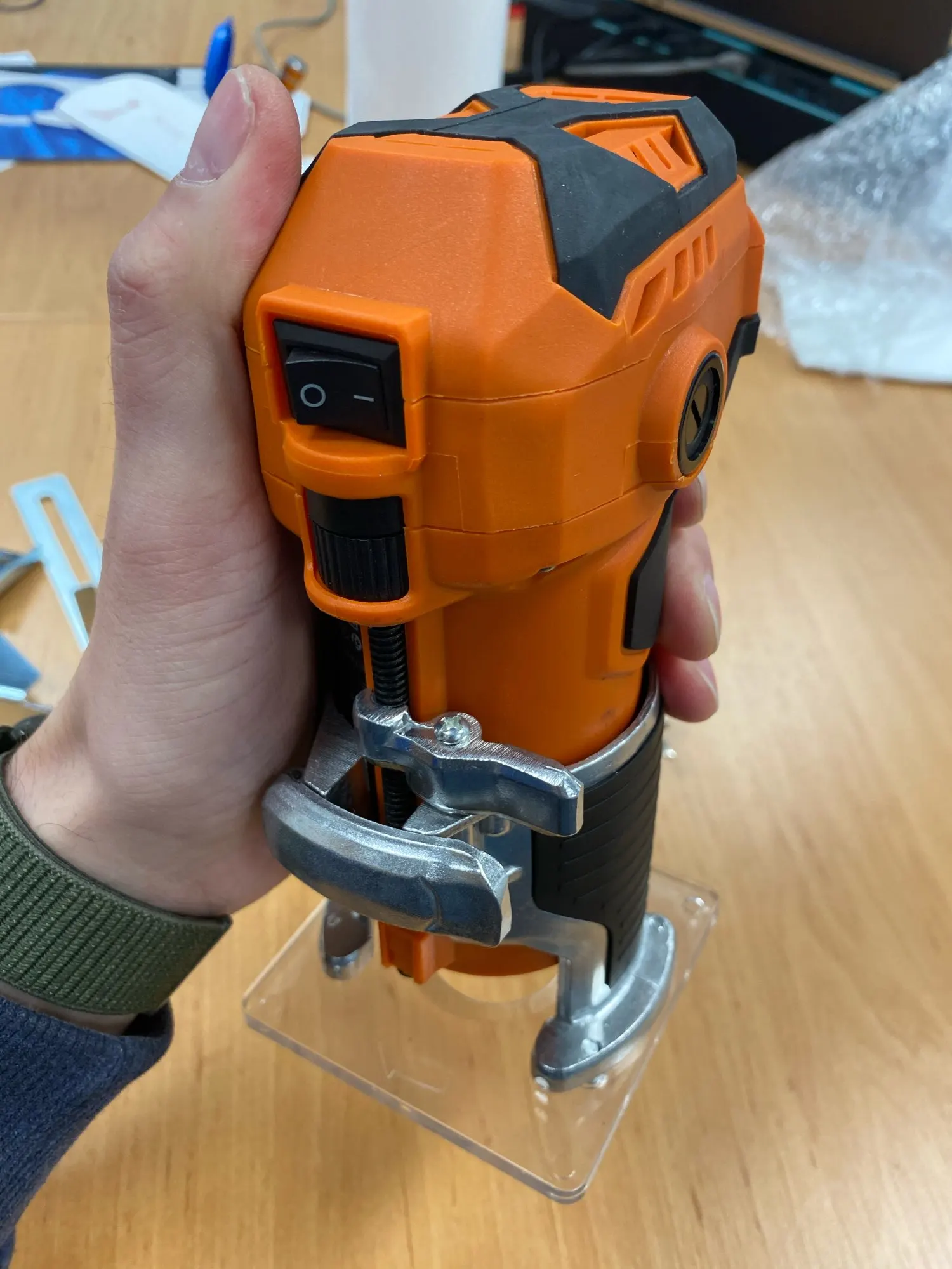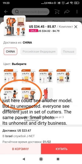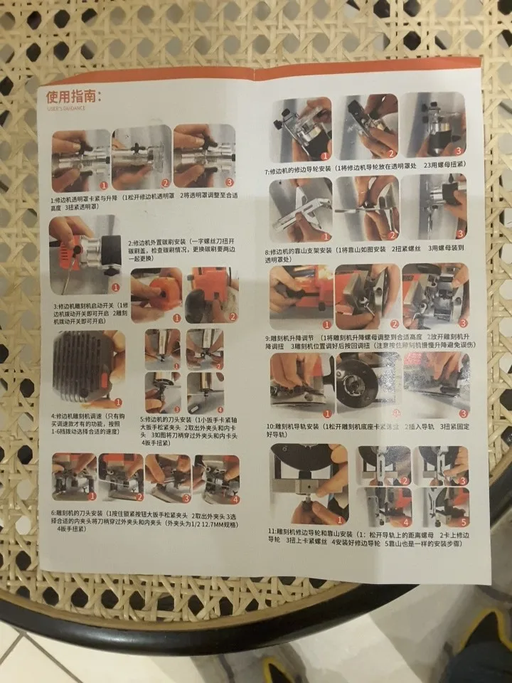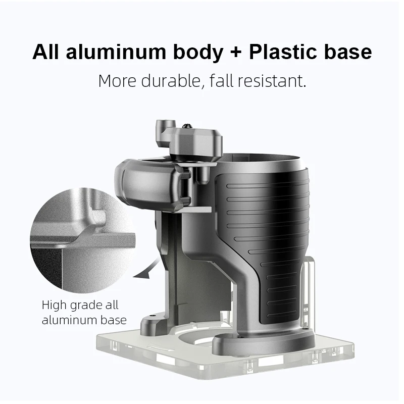 обратите внимание. везде на фото показаны фрезеры с алюминиевой базой. а мне пришел с пластиковой. думаю, что за нафиг. а оказывается, что только в максимальной комплектации с набором фрез, которые мне были не нужны идёт алюнимиевая база и нечто более брендовое. все остальные идут с пластиковой базой. Но это видно только на выборе набора. будьте внимательны. а так пришел, работает, нормально. но осадочек остался.