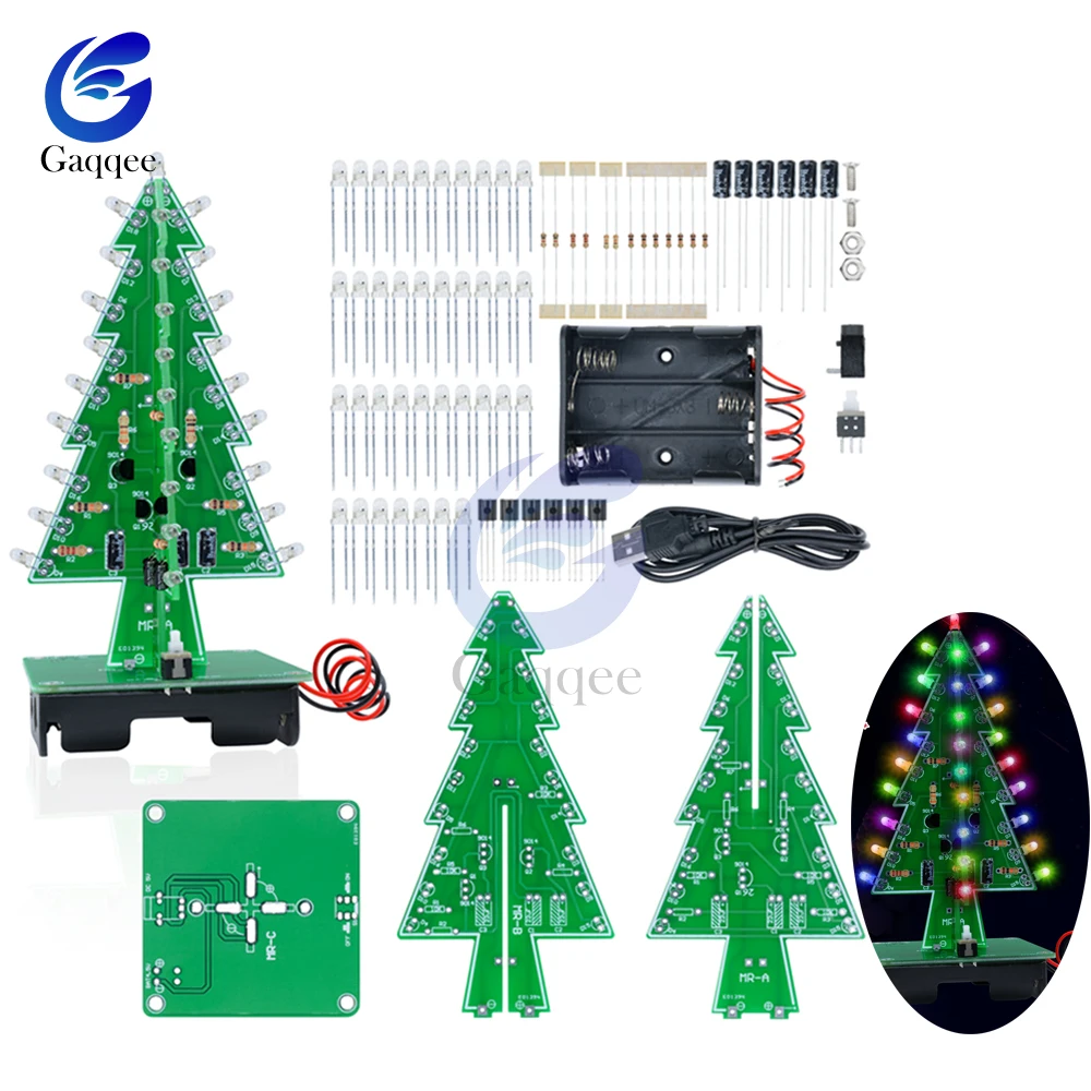 СВЕТОДИОДНЫЙ 3D набор для рождественской елки, сделай сам, 7 цветов, красныйзеленыйжелтый, электронный набор, набор для праздничного декора, печатная плата