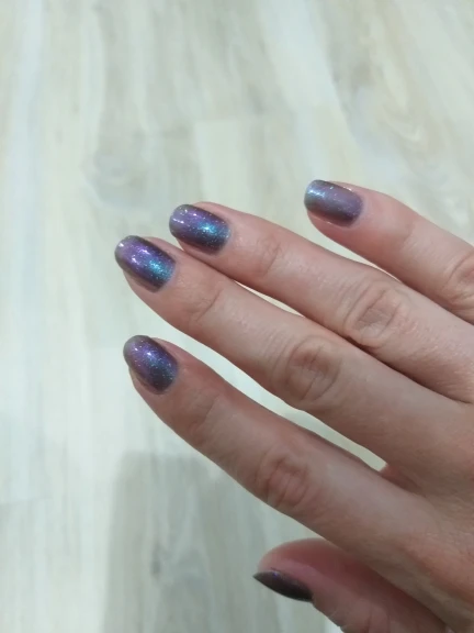 Спасибо продавцу за быструю доставку)) Лак когда получила, в бутылечке смотрелся совсем не как на картинке. Но когда нанесла, очень удивилась. Эффект получился практически как на картинке. Правда наносит надо много слоев. Очень жидкий, но звезду снимать не стану. На моем фото 3 слоя. К покупке рекомендую)) Посмотрим сколько продержится. Потом дополню отзыв))