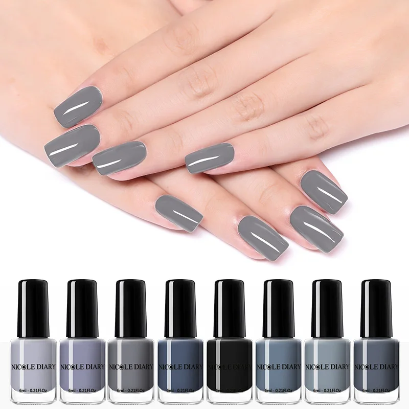 Цвет отличается, не серый, а скорее бежево-серый, хороший лак, сохнет быстро, два слоя достаточно