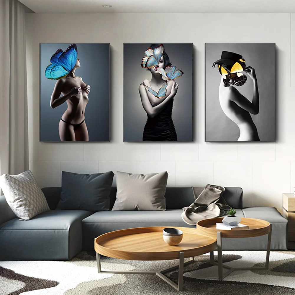 Абстрактная Сексуальная женская живопись на холсте бабочка настенная художественная Мода Girld картинки для гостиной Декор плакаты и принты Cuadros
