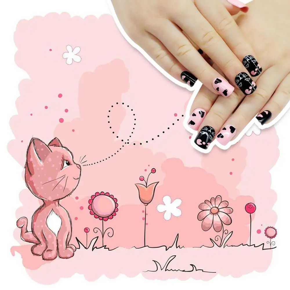 24 шт., креативный дизайн, накладные ногти для детей, Типсы для ногтей, украшения для ногтей, 3d украшения для ногтей, гель для наращивания ногтей