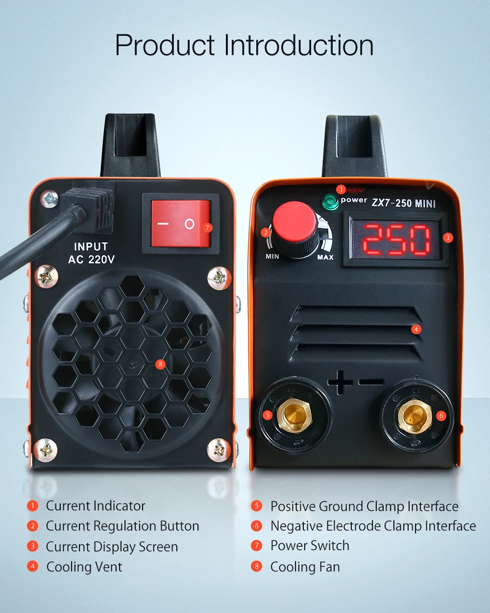 ZX7-250 250A мини Электрический сварочный аппарат портативный цифровой дисплей MMA ARC DC инвертор пластмассово-Сварочное сварочное оборудование прочный