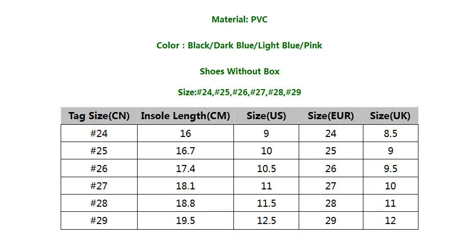 Материал: ПВХ Цвет отсутствует/темно-синий/светло-голубой/розовый Обувь без коробки