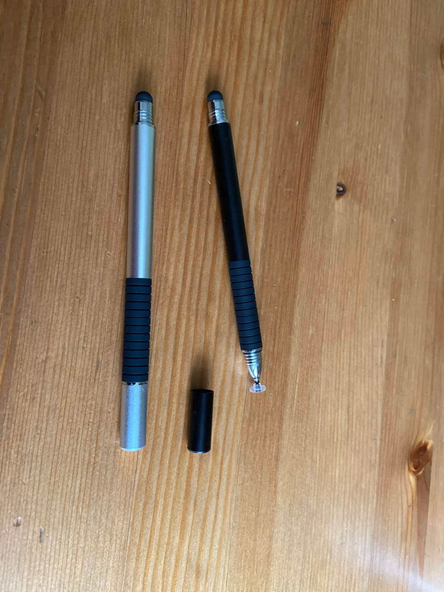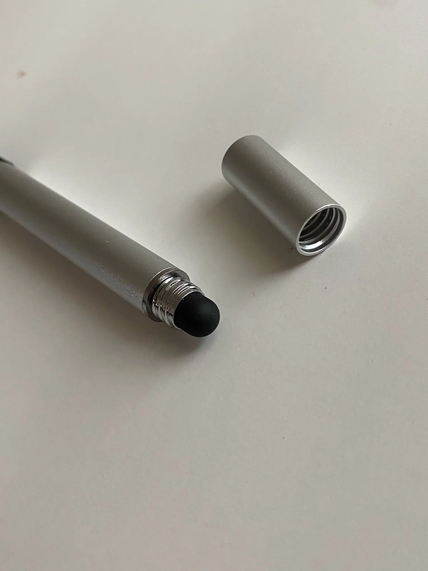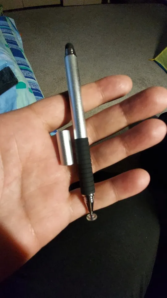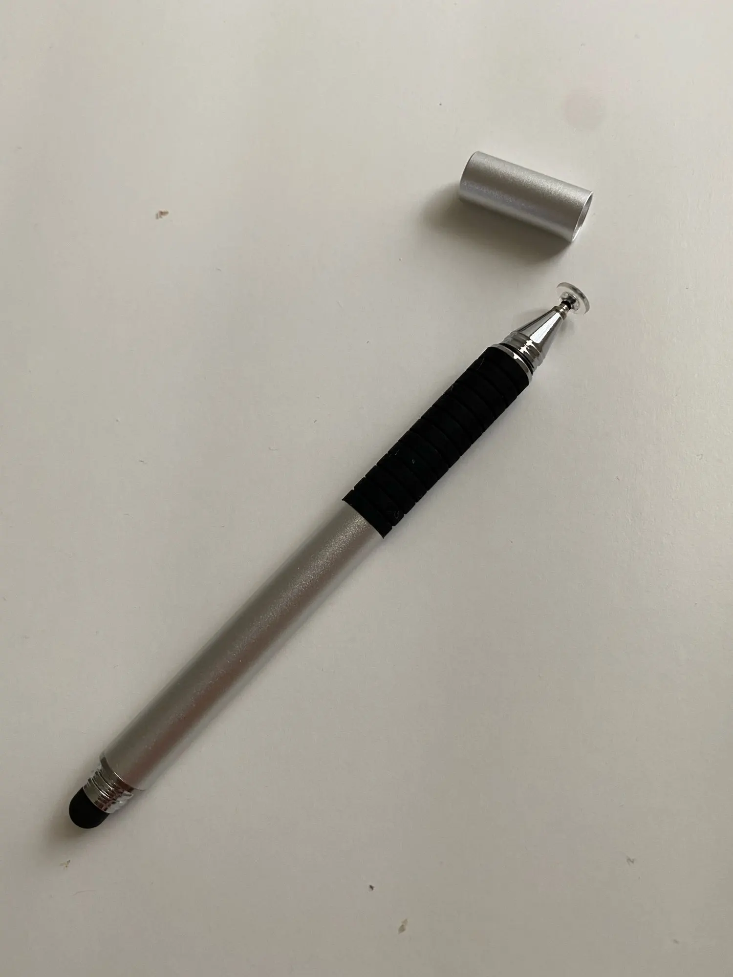 Классная вещь. Кругляк (прозрачный диск) на конце немного напрягает (после 4 лет пользования стилусом Самсунг ноте 4) но думаю привыкну. Картинки типа палка палка огуречик получился человечек самое то. В руке лежит приятно. Тяжеленький. Из металла. За такую цену просто сказка!!! На айфон 11 работает. И круглый диск и резиновая шишка. Рекомендую!!!