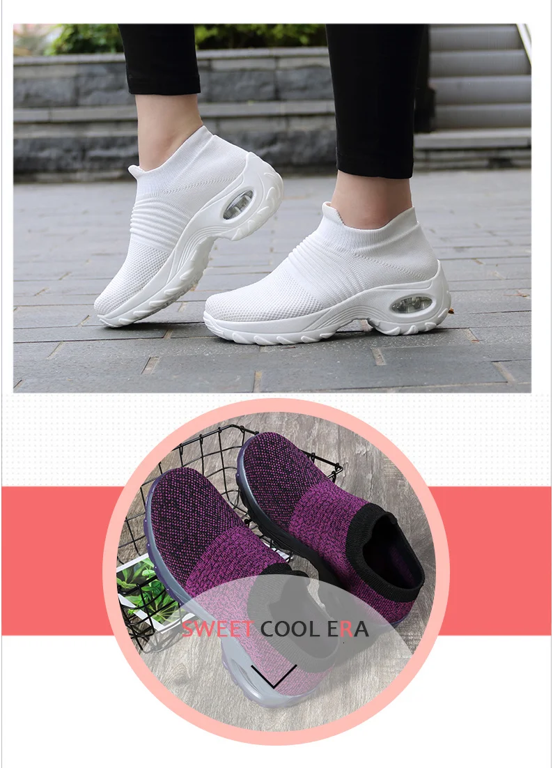 Кроссовки-носки женские, теннисная обувь на платформе, однотонные дышащие, на толстой подошве