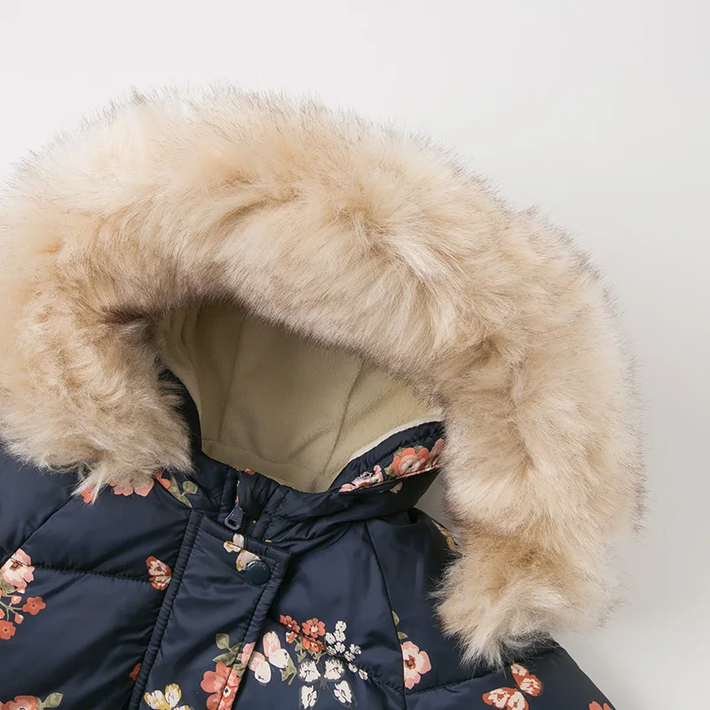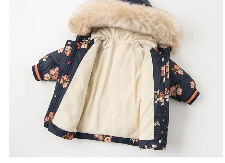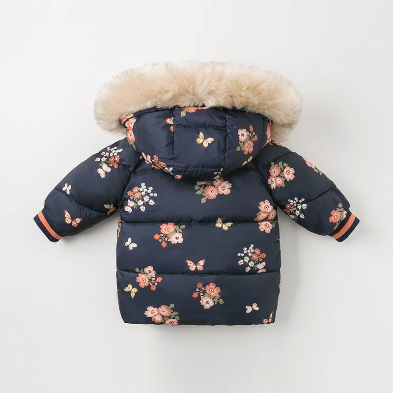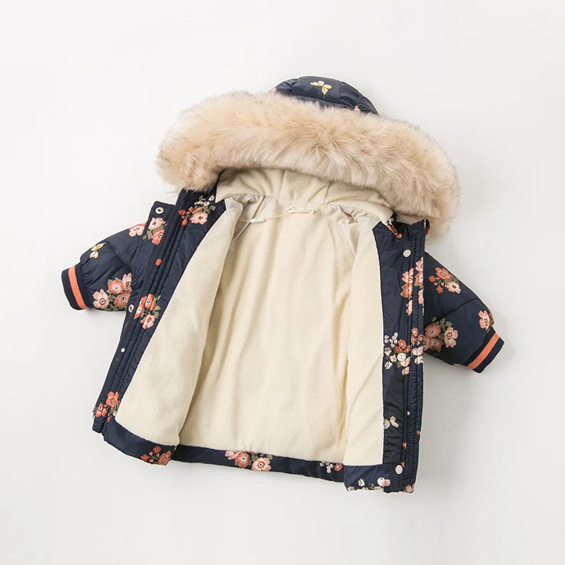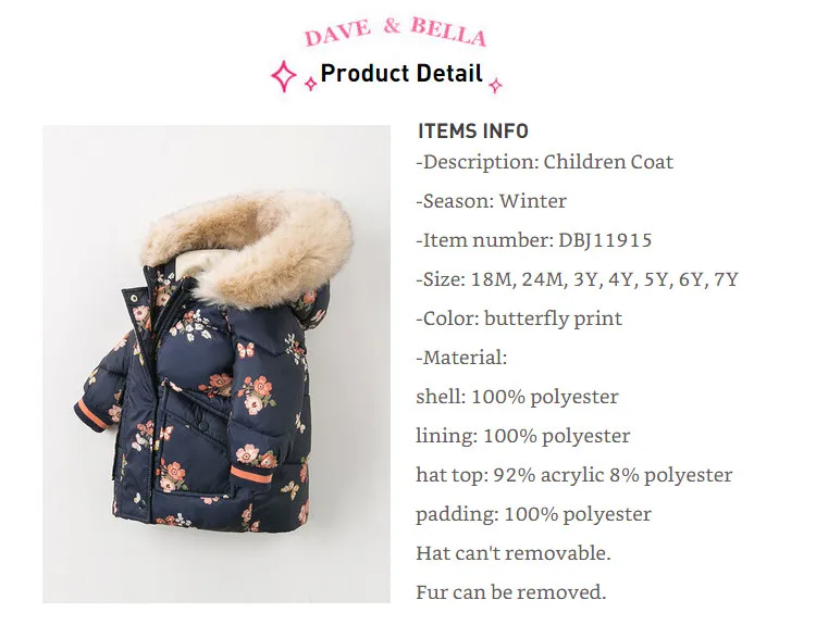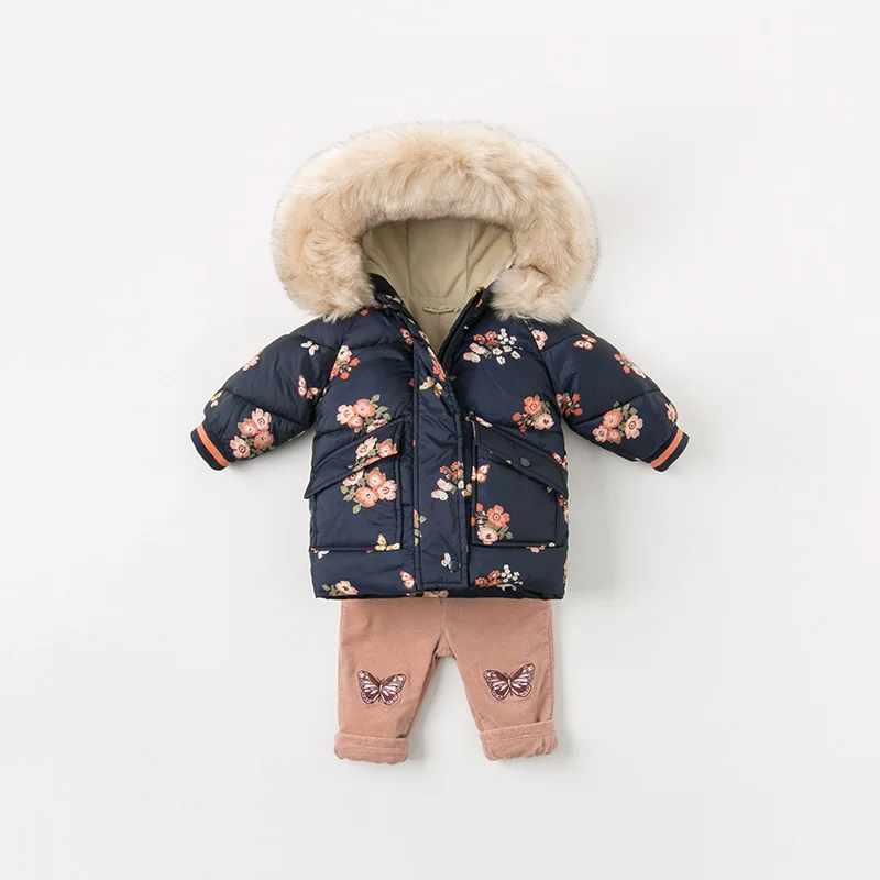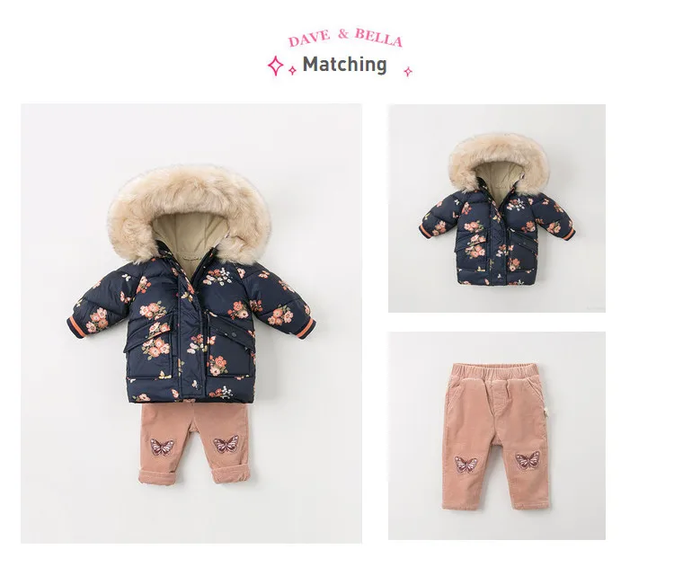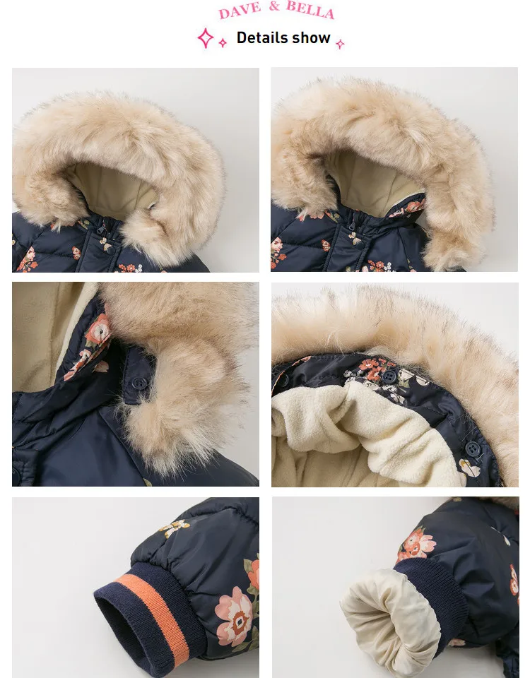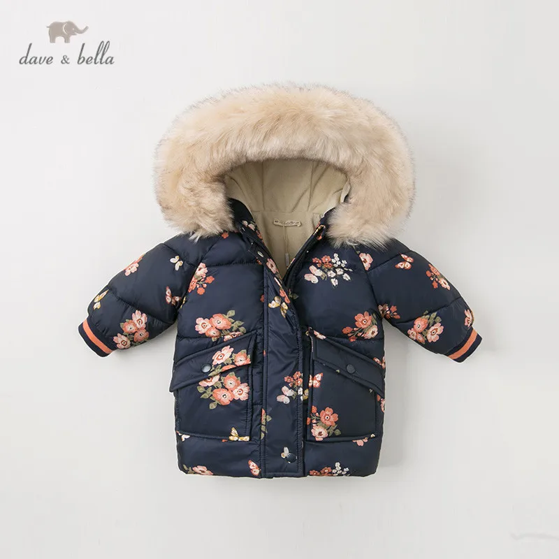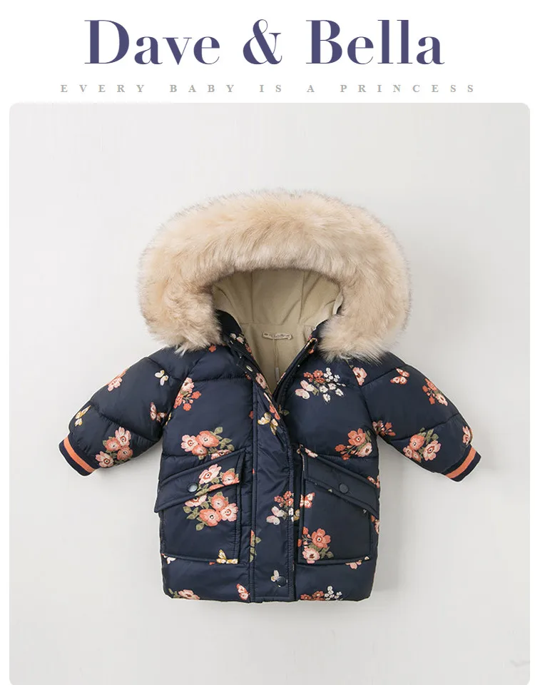 DBJ11915 dave bellaзимнее пальто с капюшоном и цветочным принтом для маленьких девочек Детская стеганая куртка Детское пальто высокого качества детская стеганая верхняя одежда