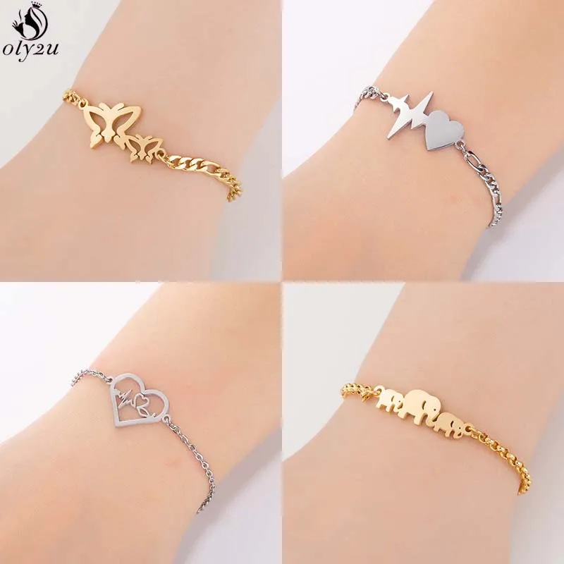 Oly2u стильный браслеты со слоном-бабочка из нержавеющей стали для женщин браслет с подвеской регулируемый браслет дружбы подарочные браслеты